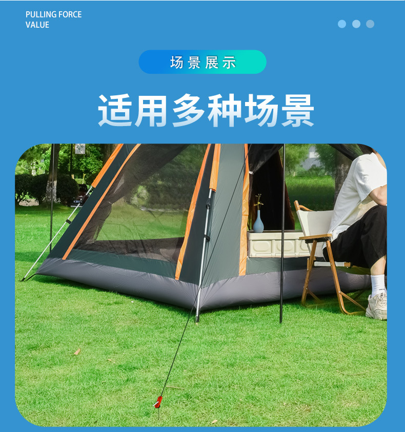 • 카키색 반사 방풍 로프 4개 + 접지 못 4개 + 클립 4개 + 망치