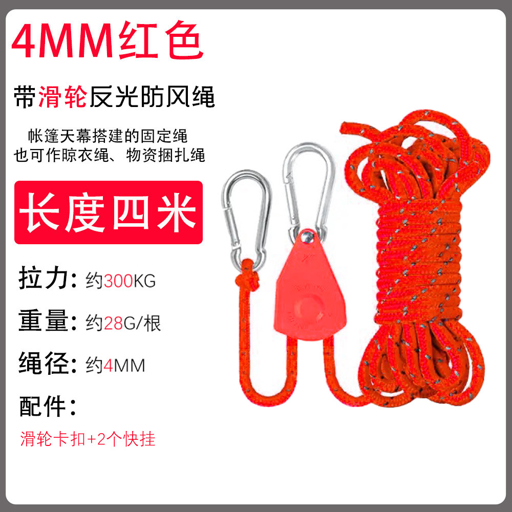 • 빨간색 롤러 스케이트 반사 방풍 로프 4개 + 접지 못 4개 + 클립 4개
