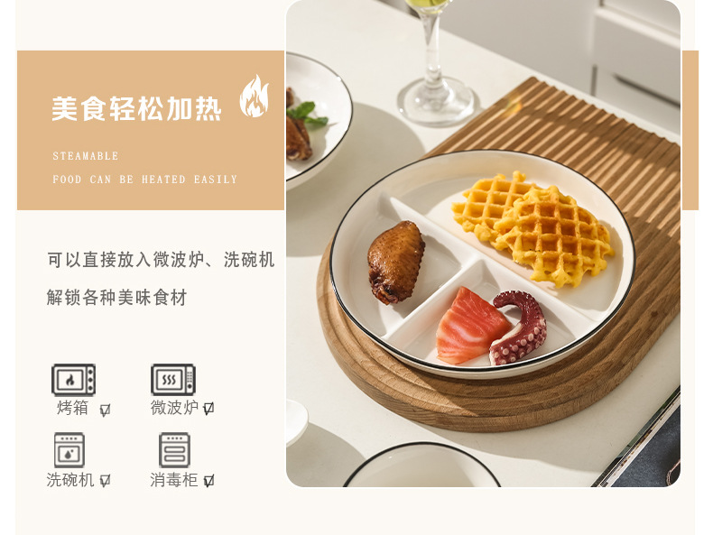 세라믹 정량 플레이트 3 칸 211 분할 플레이트 분할 구획 지방 감소 디너 플레이트 가정용 어린이 조식 식기 진쑤언스토어 가기