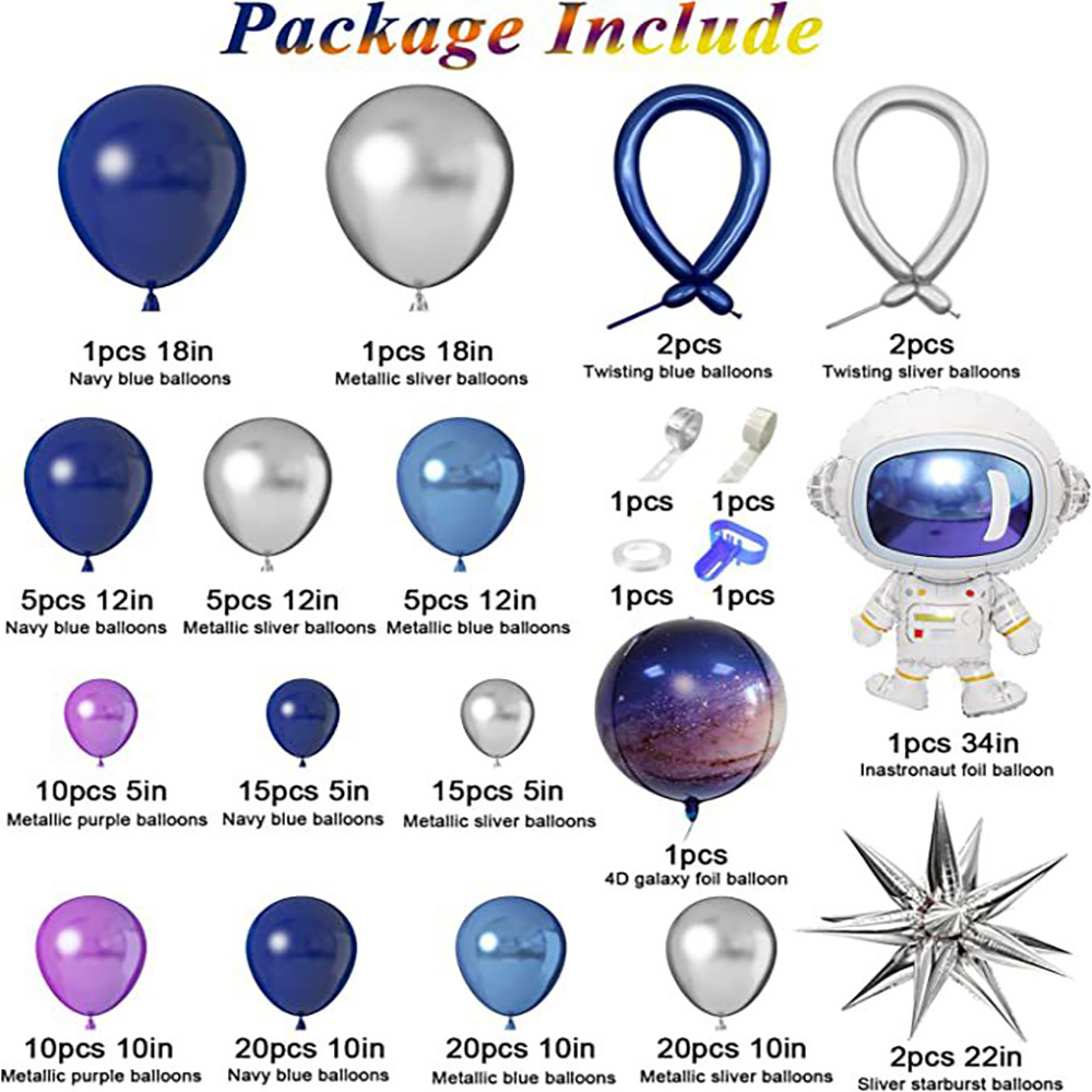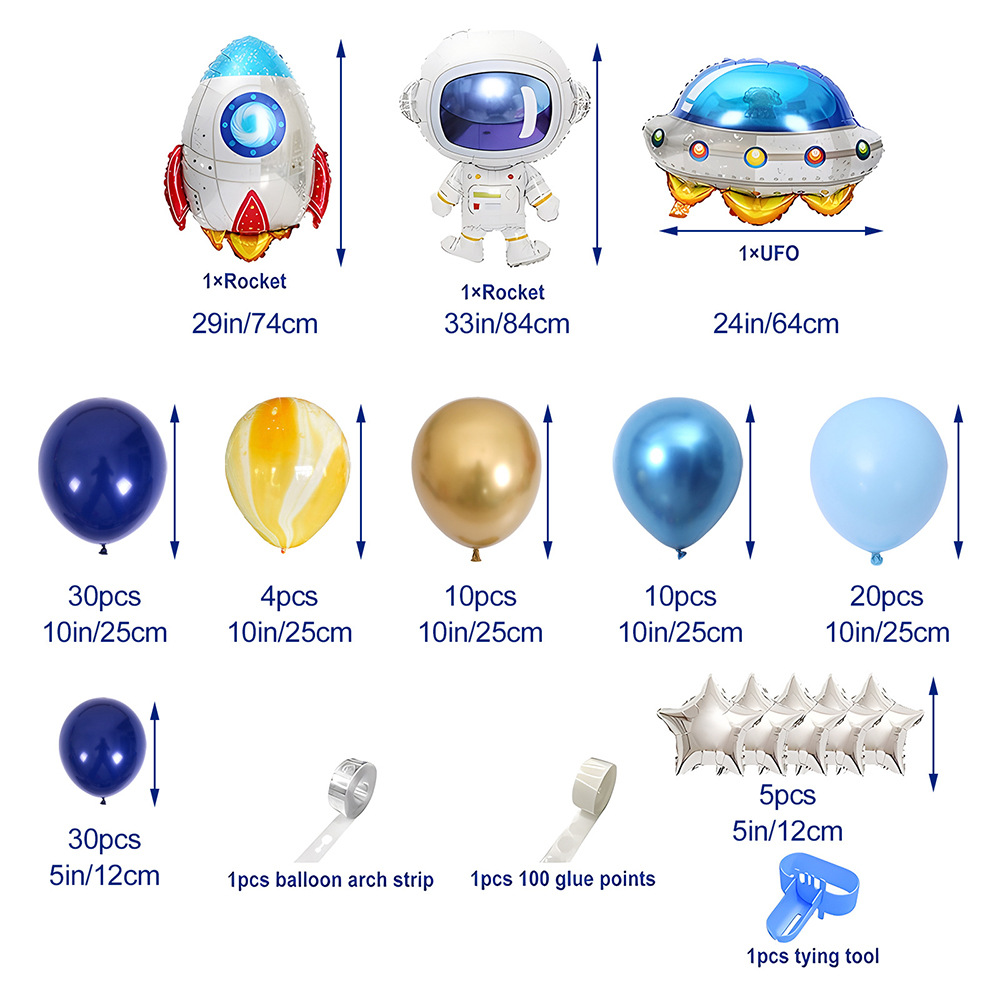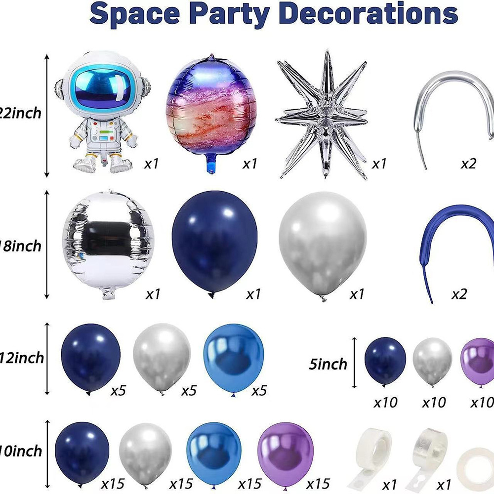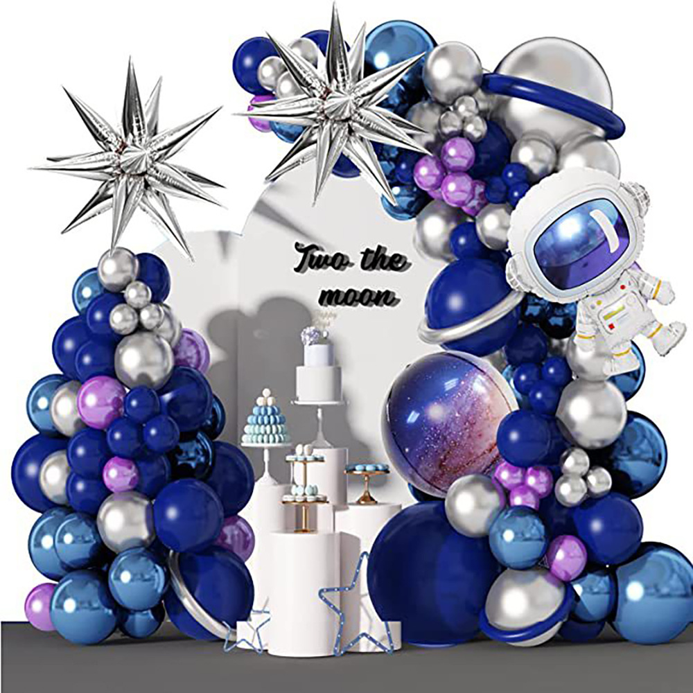 크로스 국경 공간 우주 비행사 풍선 체인 세트 소년 생일 테마 빈티지 밤 블루 라텍스 풍선 파티 장식