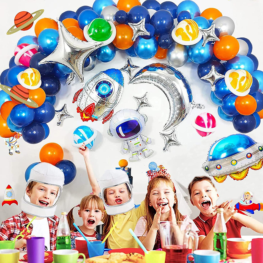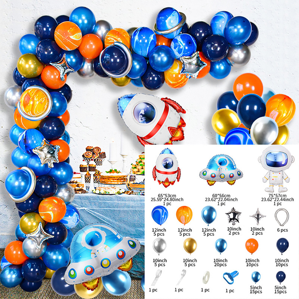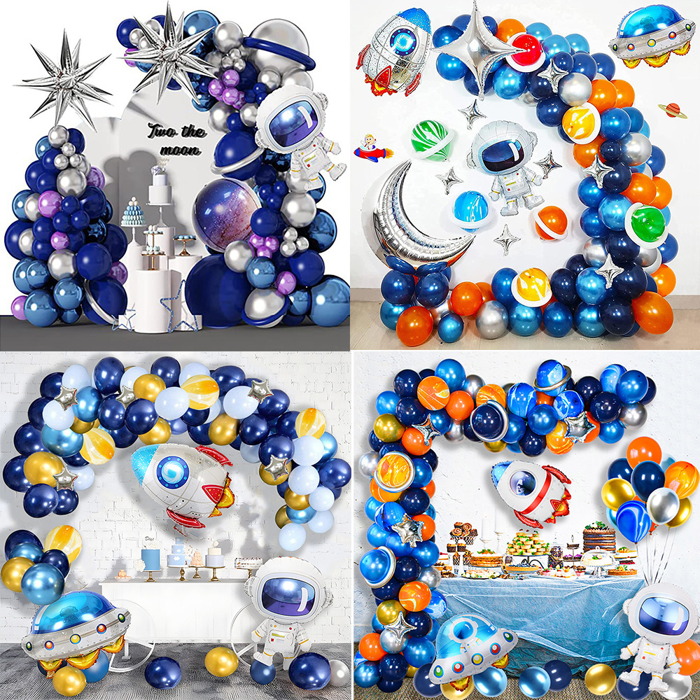 크로스 국경 공간 우주 비행사 풍선 체인 세트 소년 생일 테마 빈티지 밤 블루 라텍스 풍선 파티 장식스토어 가기