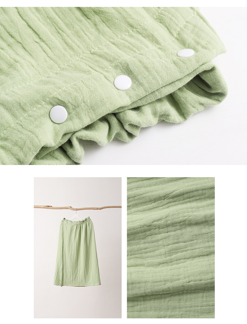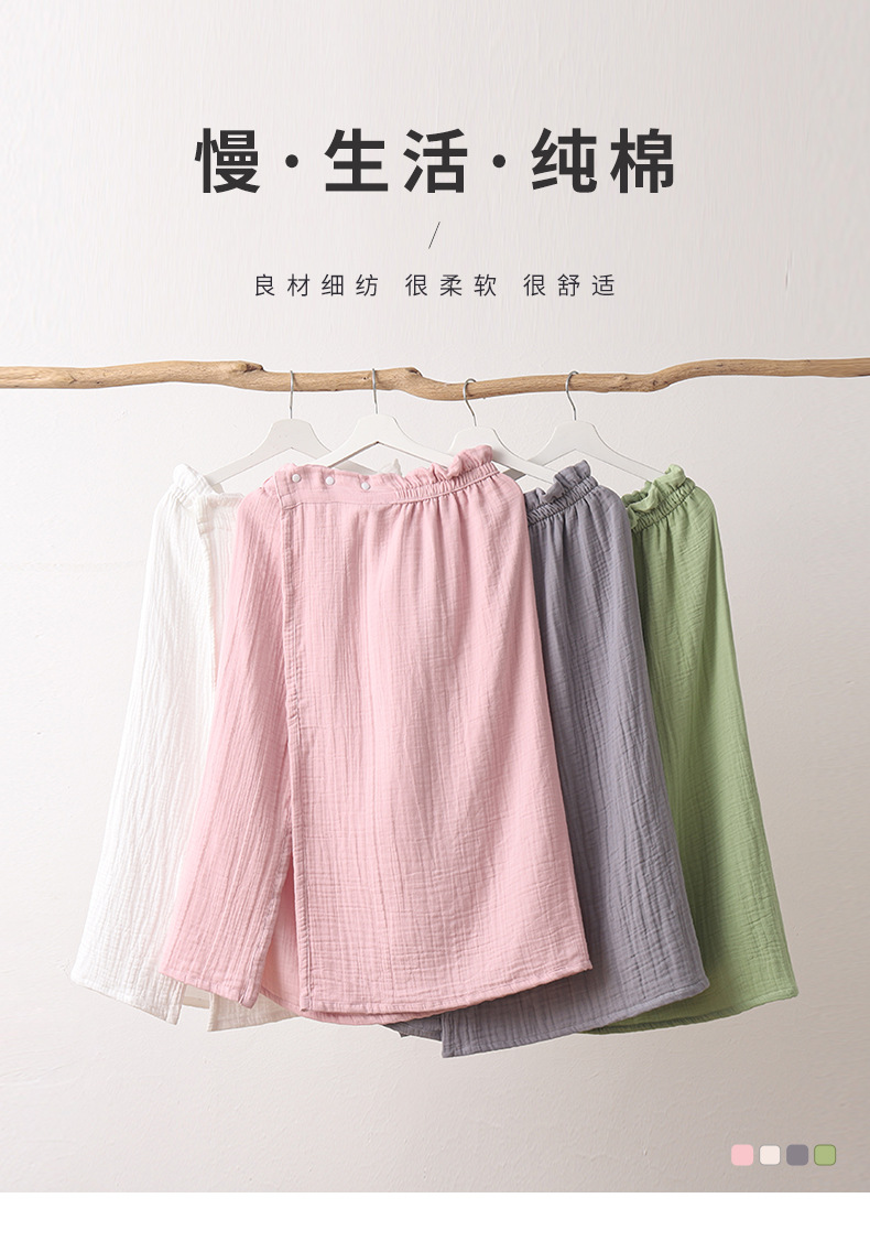 봄과 여름 면화 클래스 3 층 거즈 목욕 스커트 여성용 스트랩리스 스커트 대형 목욕 타월 착용 및 홈 뷰티 살롱을위한 포장스토어 가기