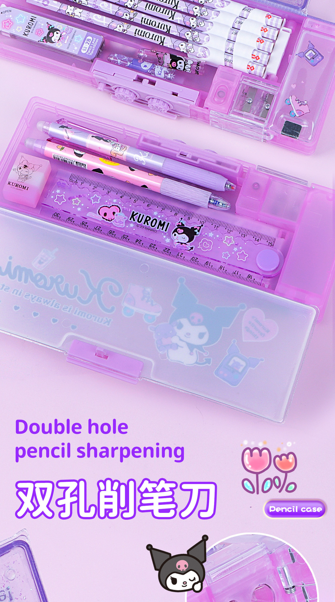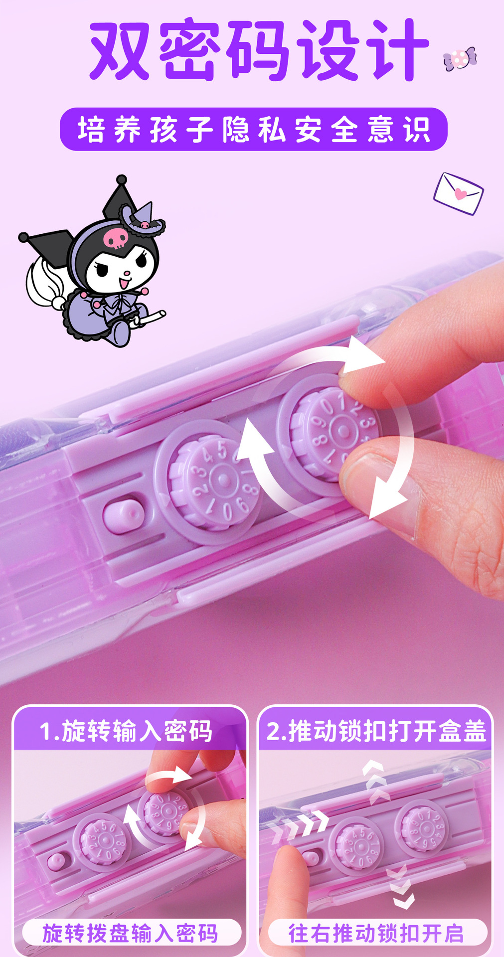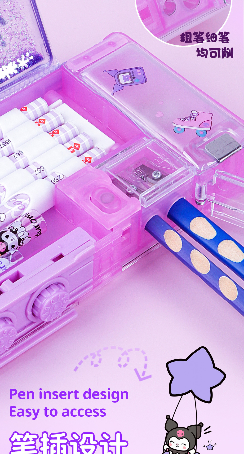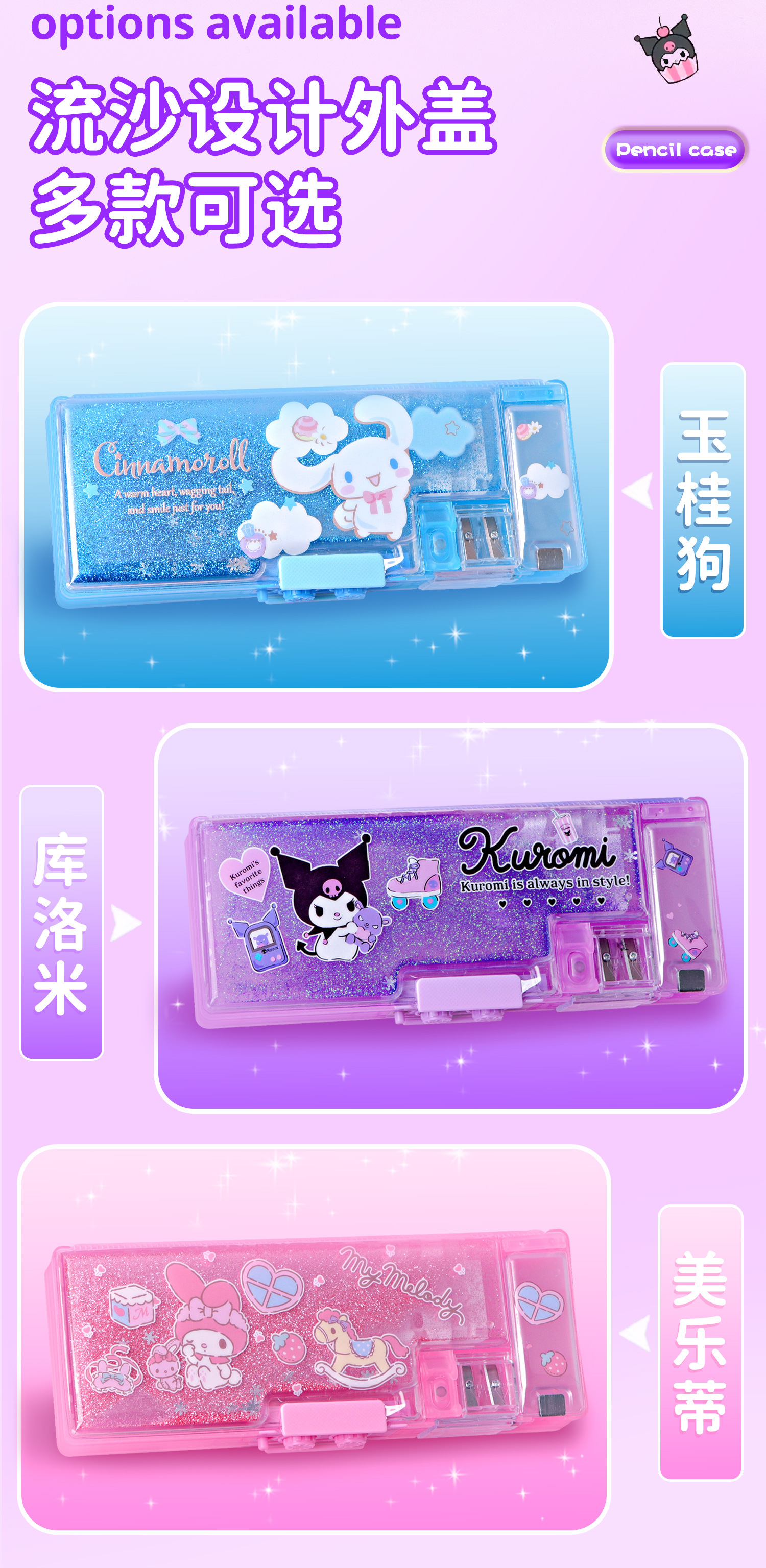 Sanrio 초등학생 Kulomi Password Lock quicksand Pen 케이스 멜로디 대용량 다기능 문구 높은 색상 가치