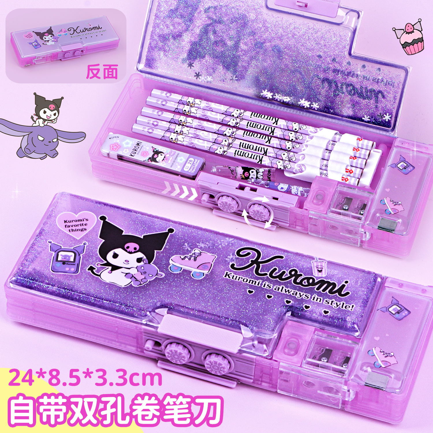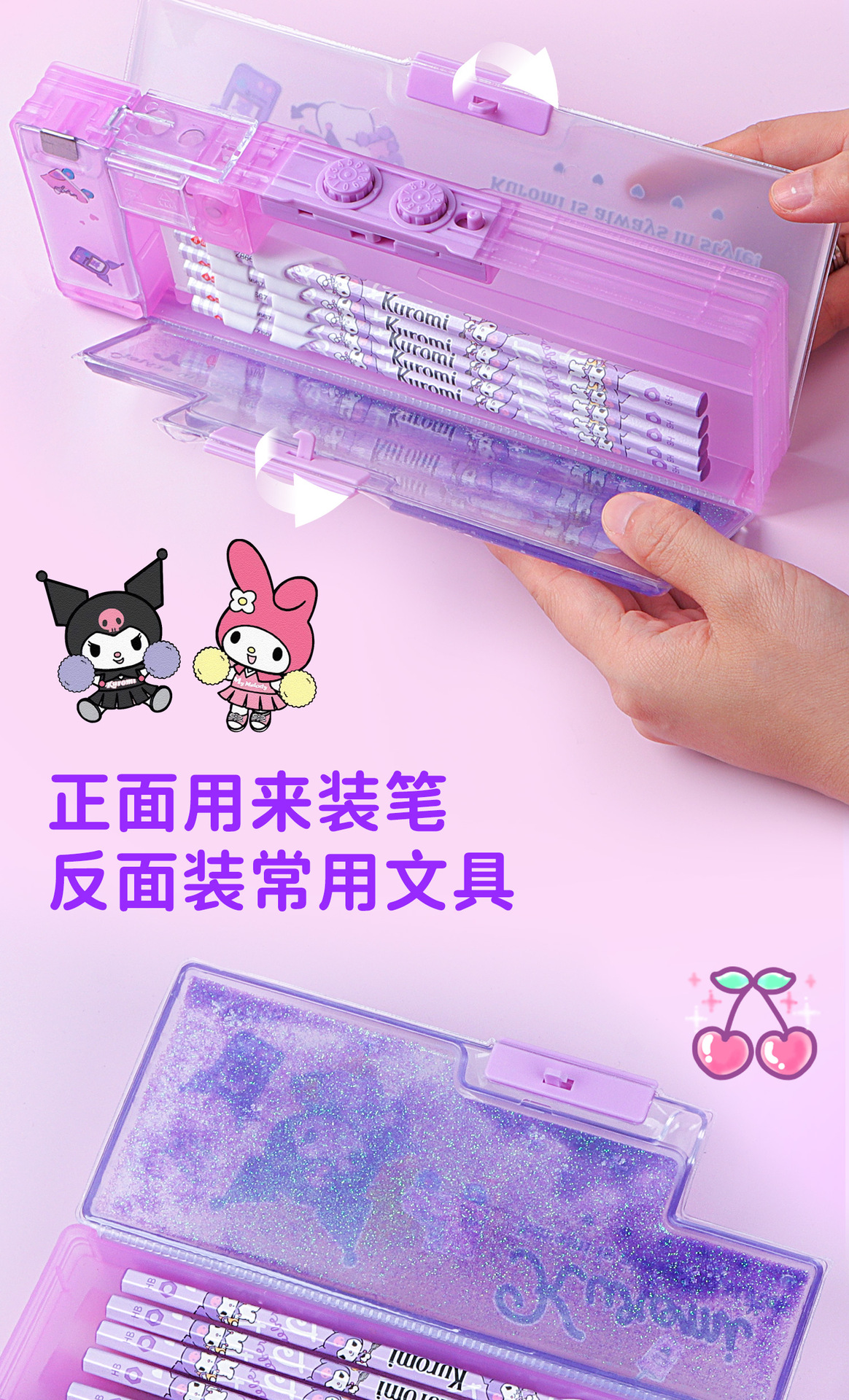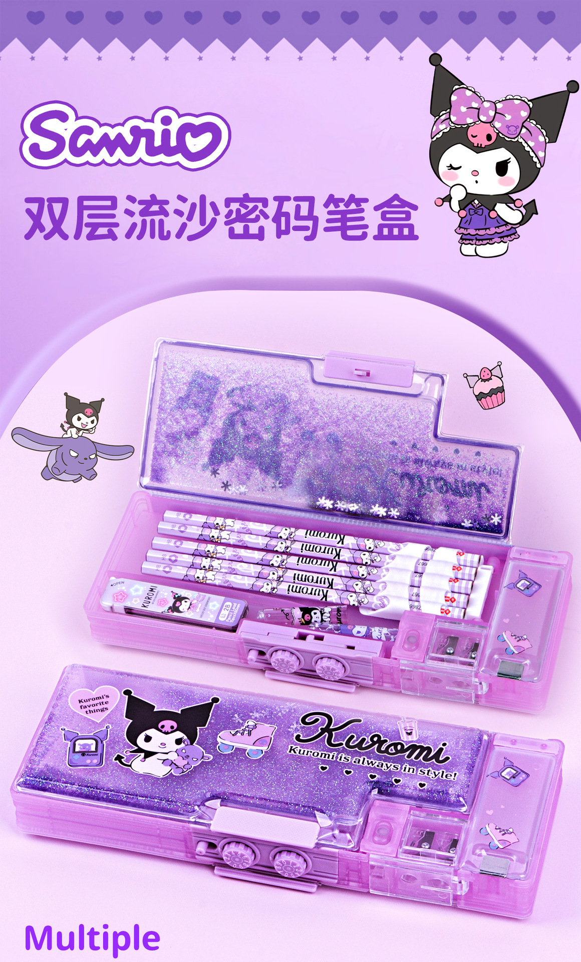 Sanrio 초등학생 Kulomi Password Lock quicksand Pen 케이스 멜로디 대용량 다기능 문구 높은 색상 가치스토어 가기
