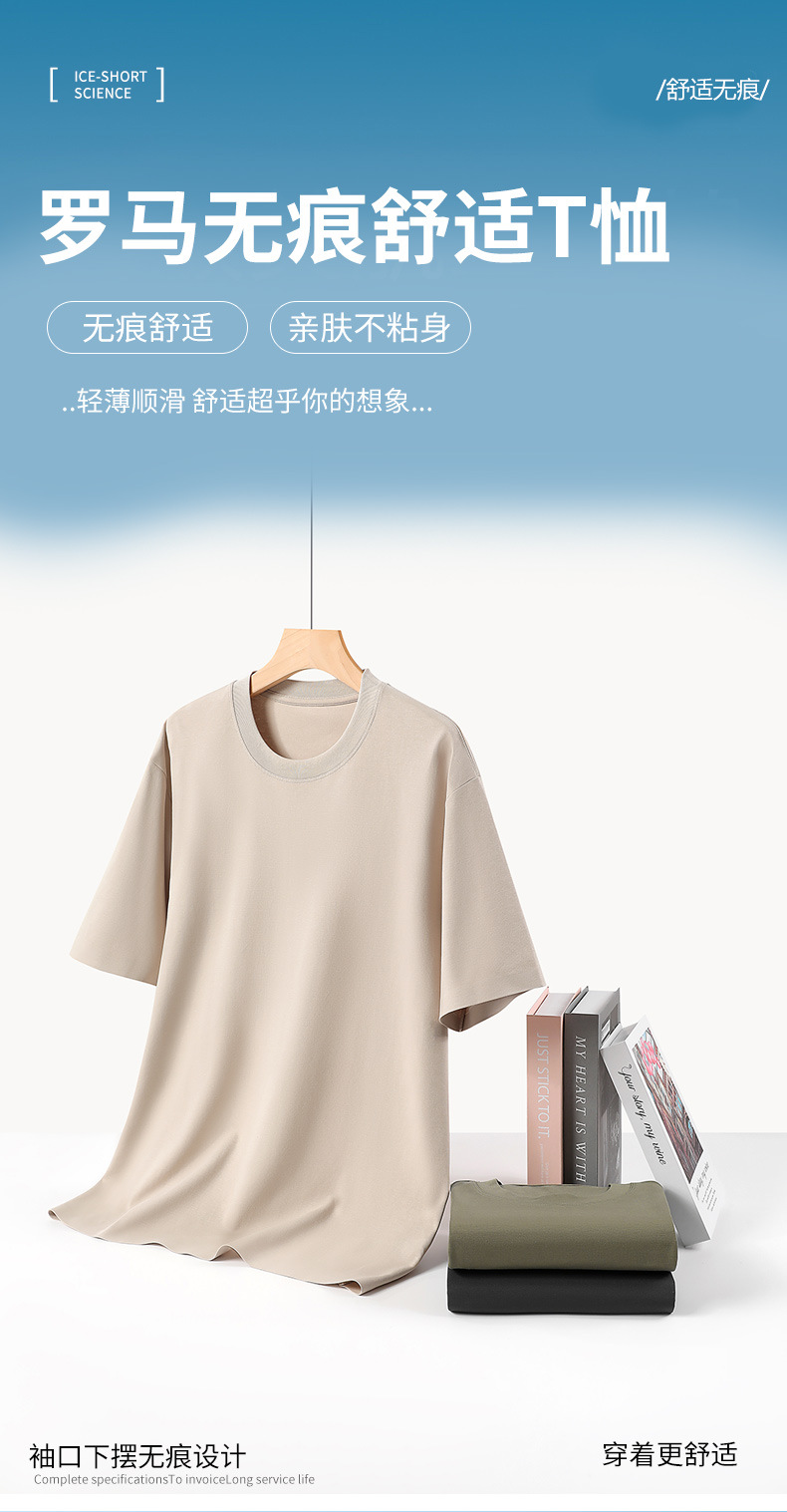 하이 엔드 원활한 티셔츠 로마면 210g 여름 남성 이음매없는 짧은 소매 패션 브랜드 하프 슬리브 느슨한 고급 멋진 티셔츠스토어 가기