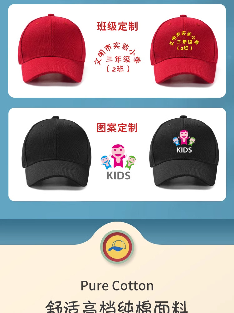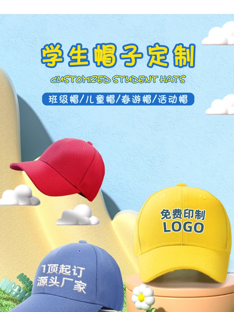 초등학생용 노란색 모자, 어린이 학급 맞춤형 로고, 군사훈련용 남녀 어린이 야구 모자, 중대형 어린이용 챙모자, 햇빛 가리개