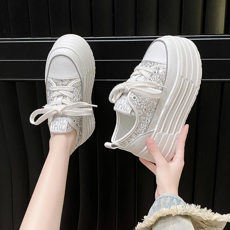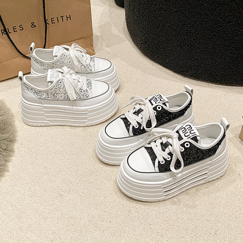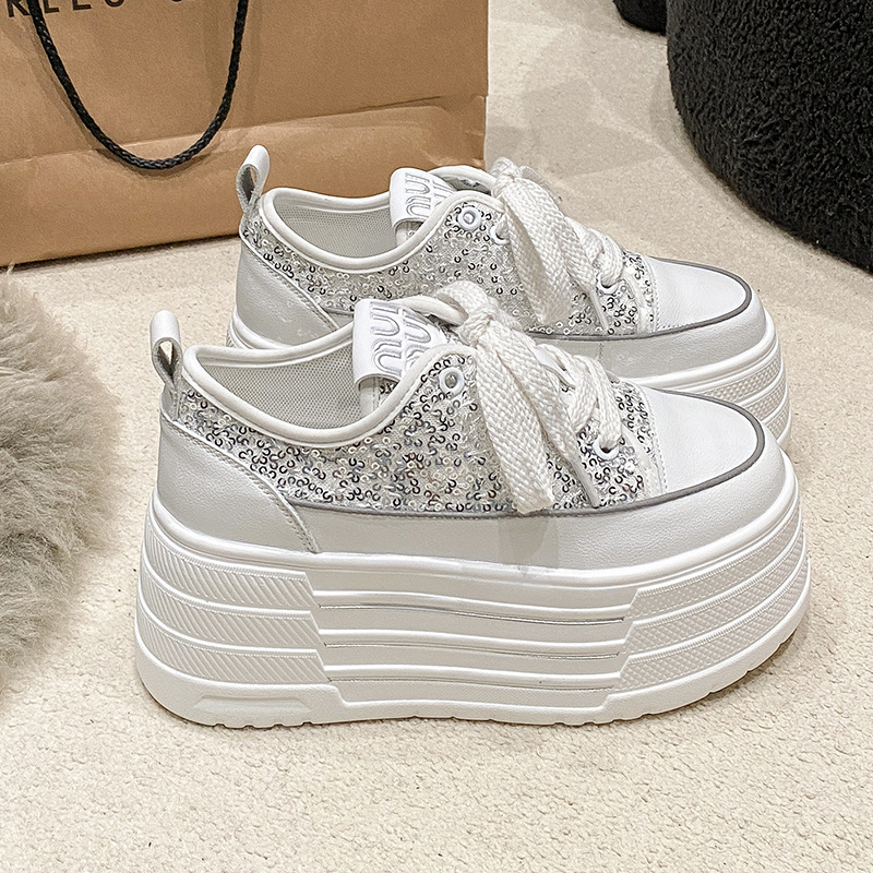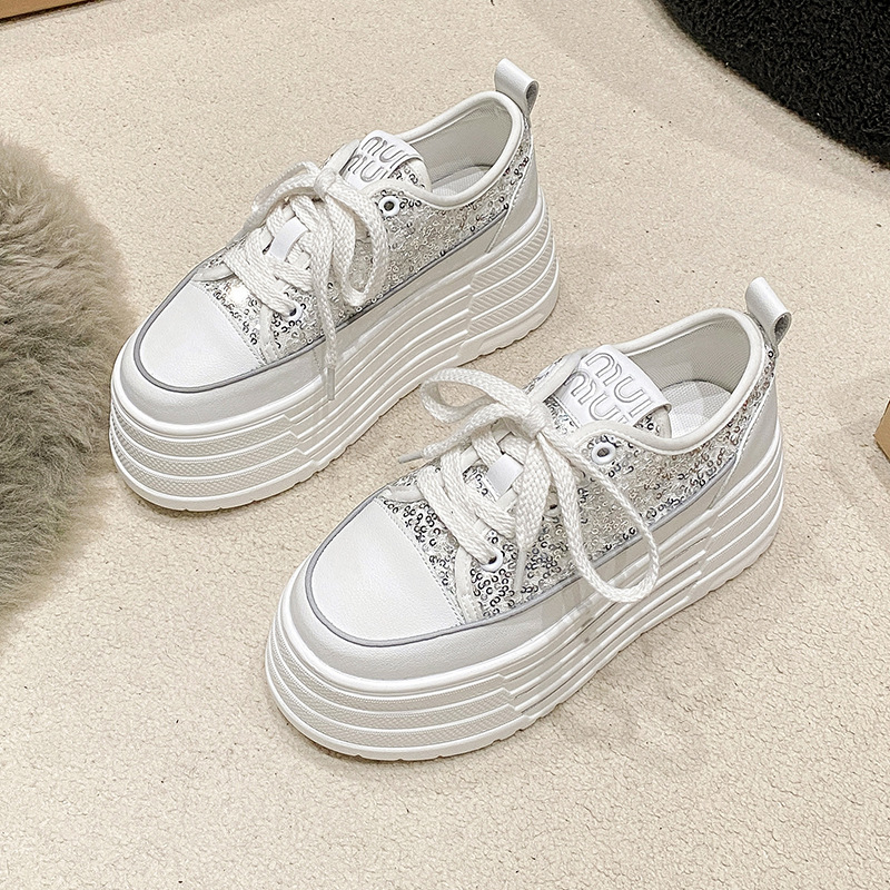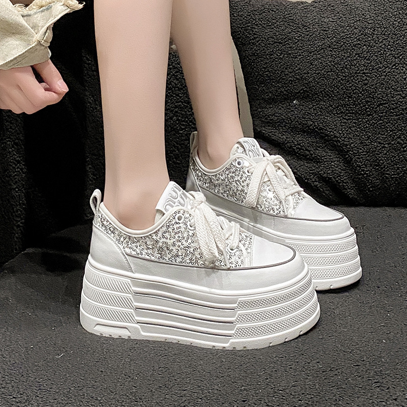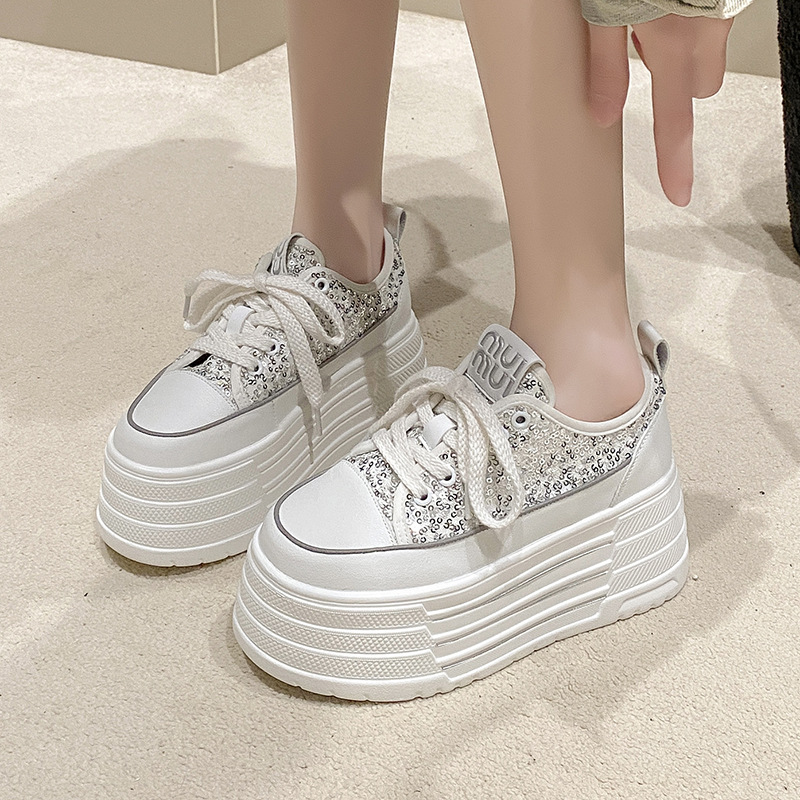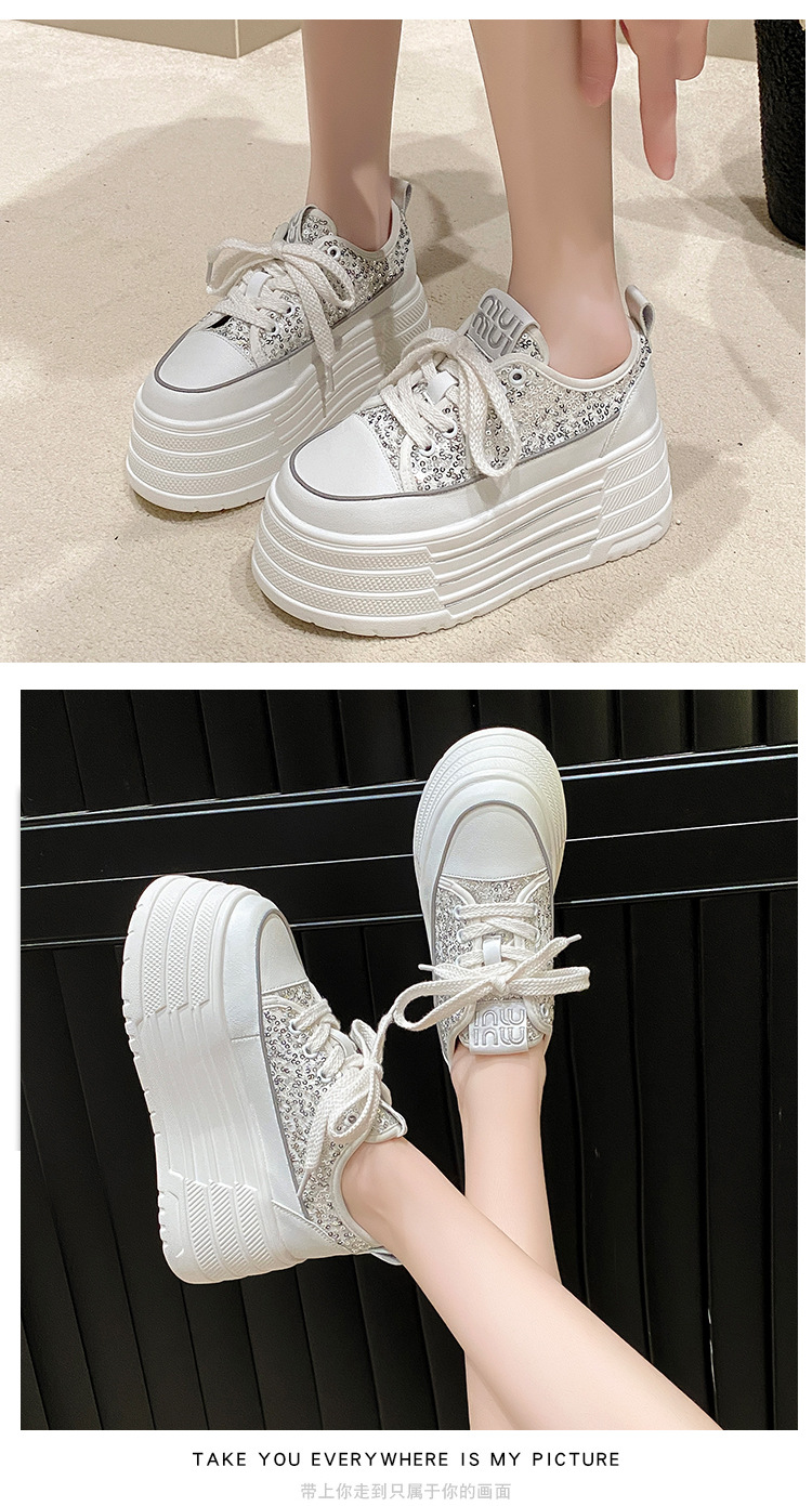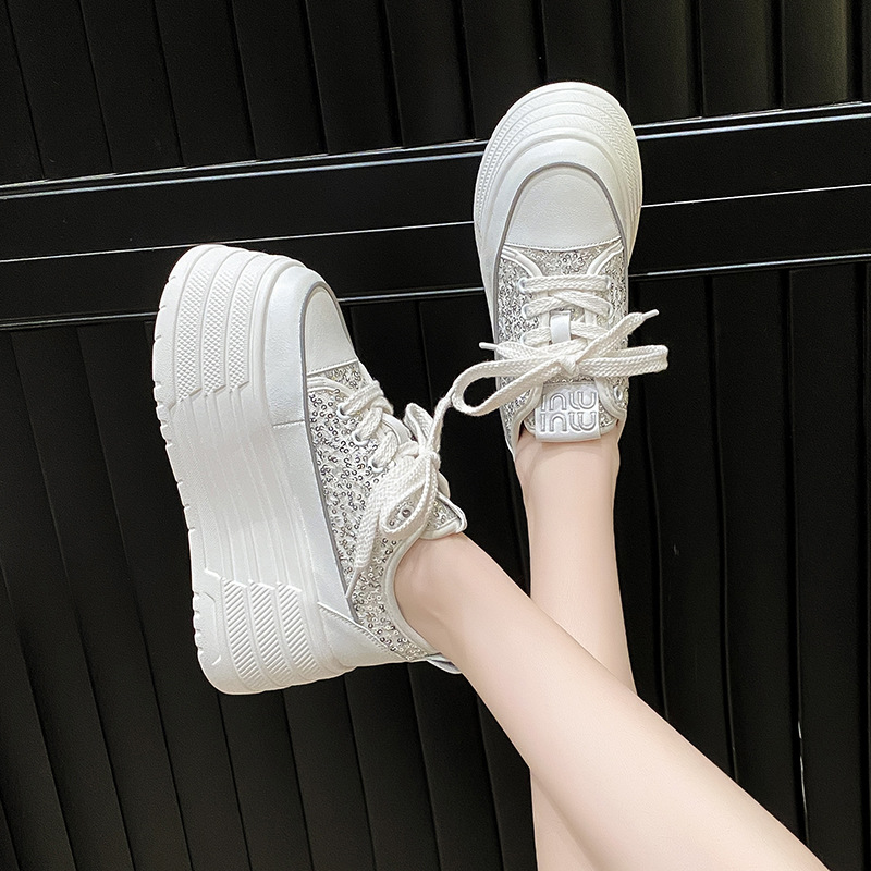 8cm 스팽글 작은 흰색 신발 여성의 2025 봄 새로운 작은 높이 스폰지 케이크 신발 캐주얼 스포츠 신발스토어 가기