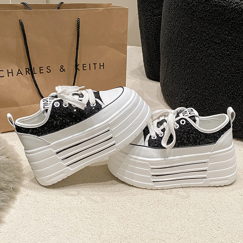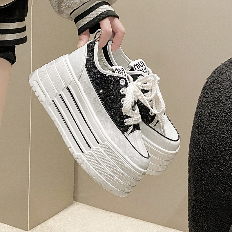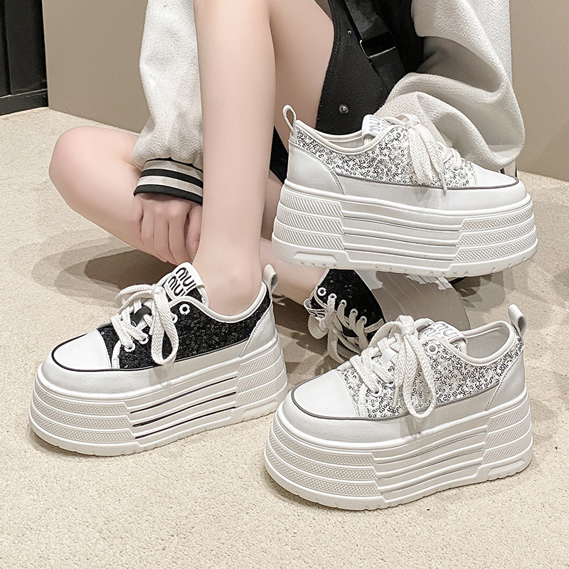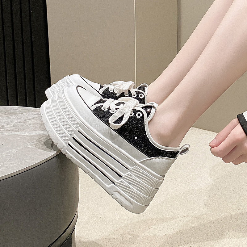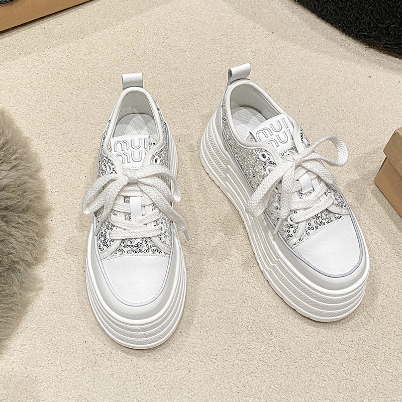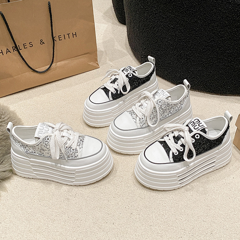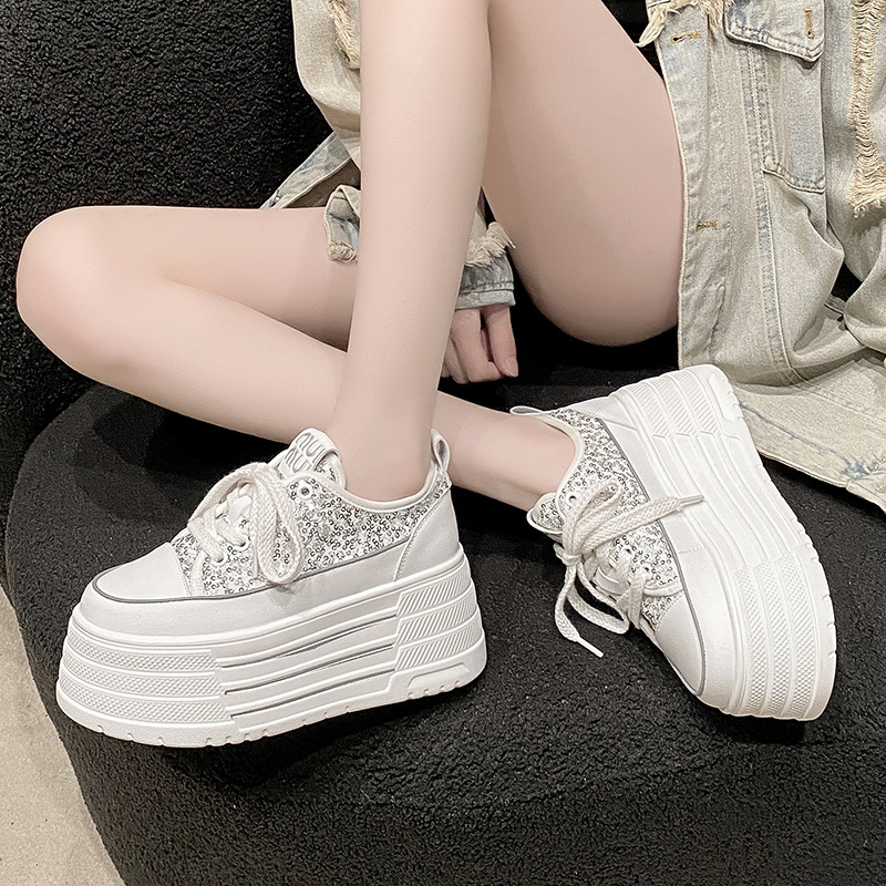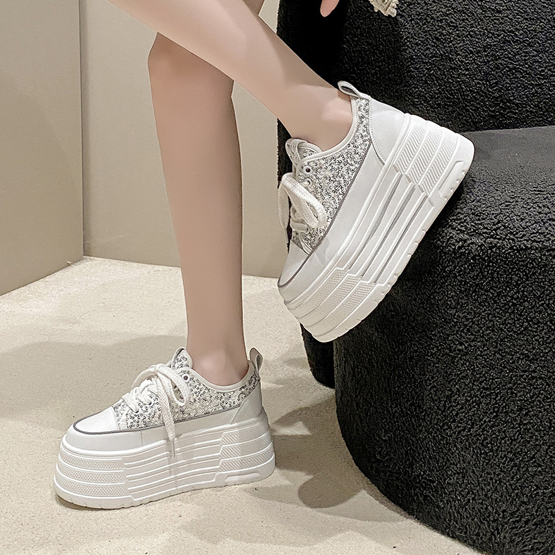 8cm 스팽글 작은 흰색 신발 여성의 2025 봄 새로운 작은 높이 스폰지 케이크 신발 캐주얼 스포츠 신발스토어 가기