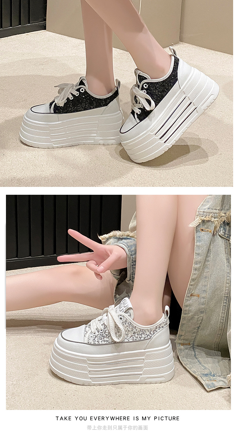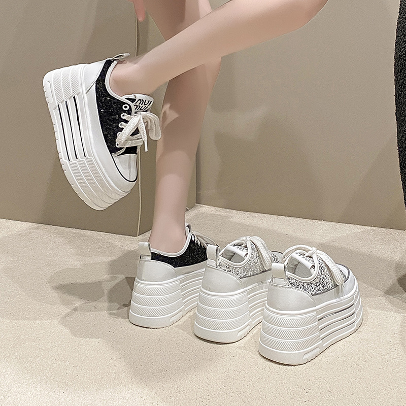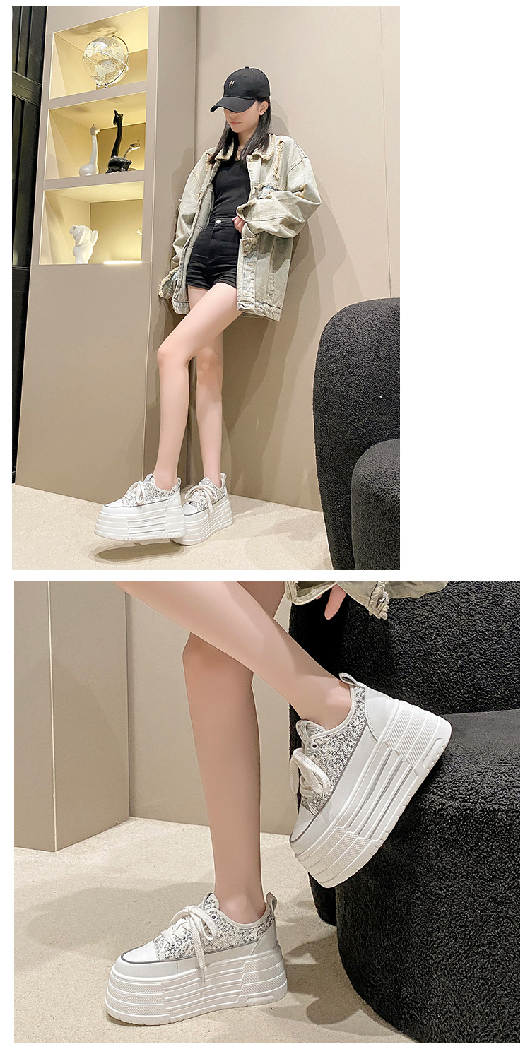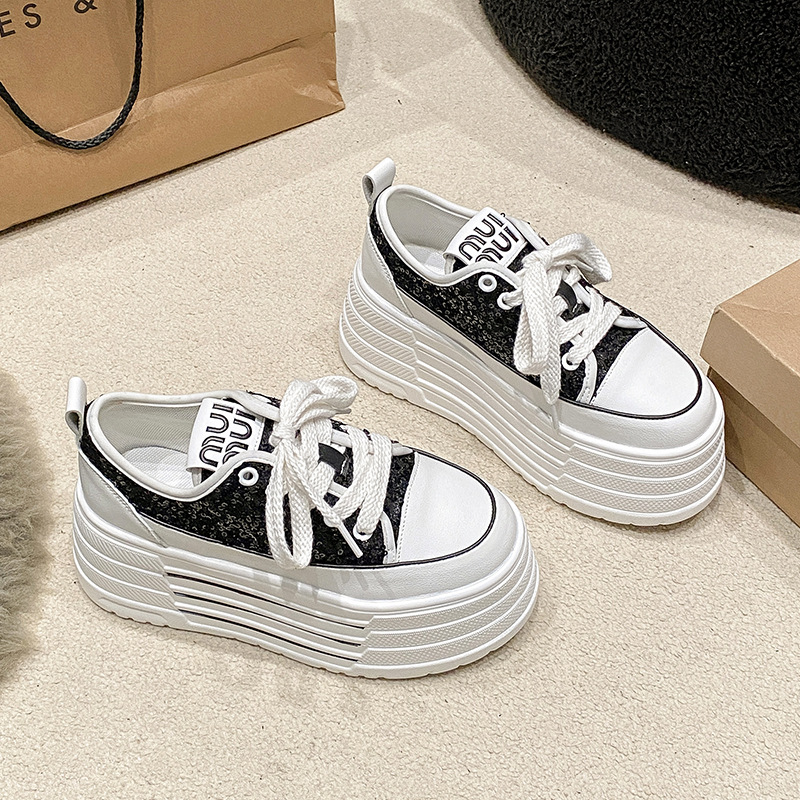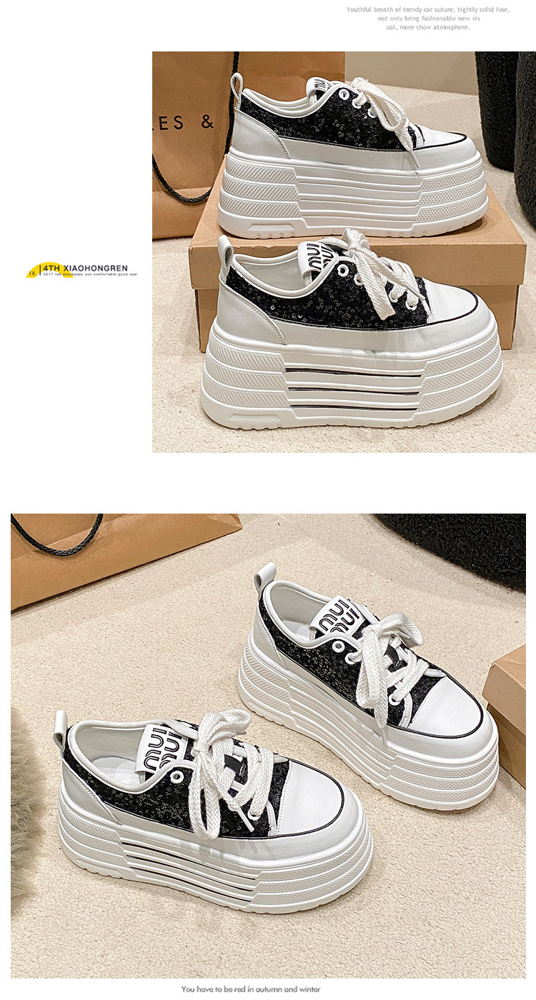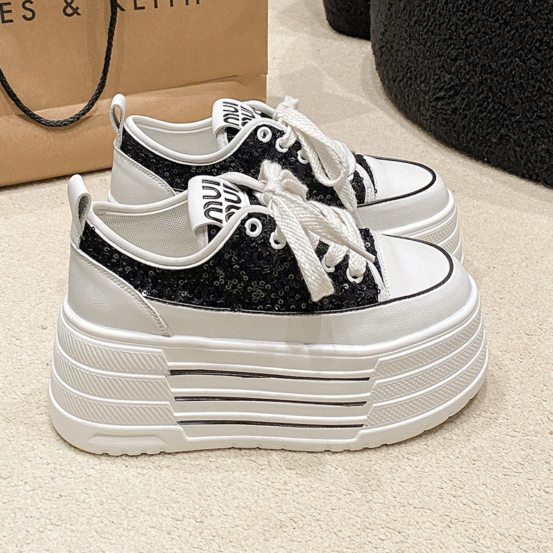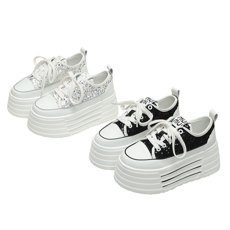 8cm 스팽글 작은 흰색 신발 여성의 2025 봄 새로운 작은 높이 스폰지 케이크 신발 캐주얼 스포츠 신발스토어 가기