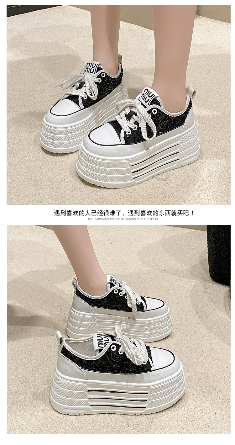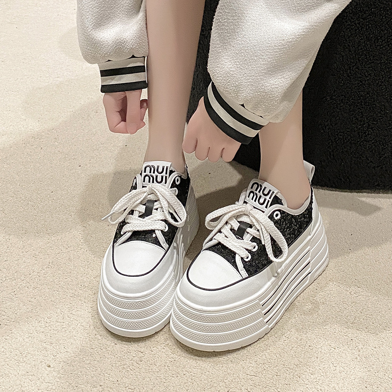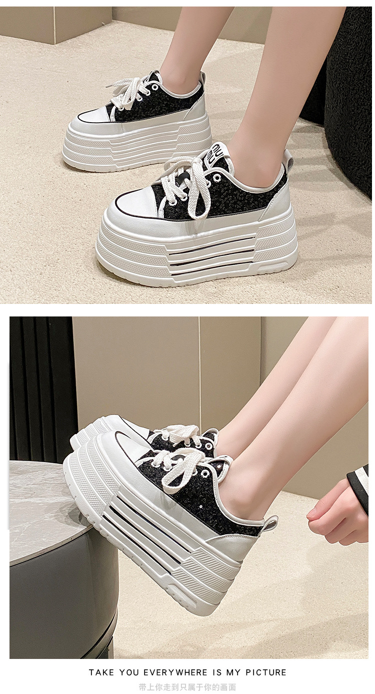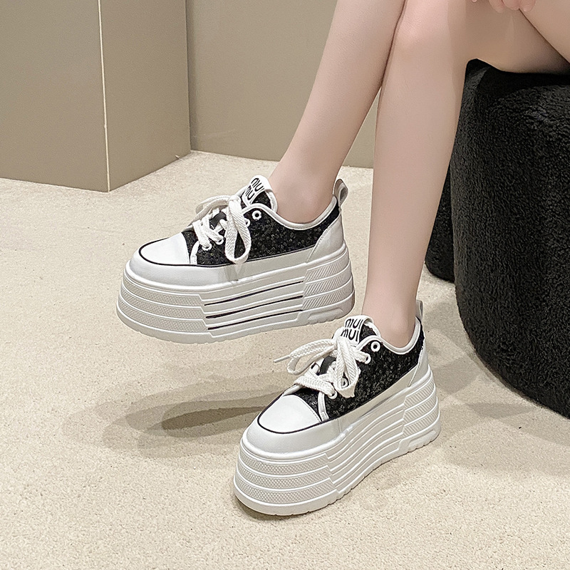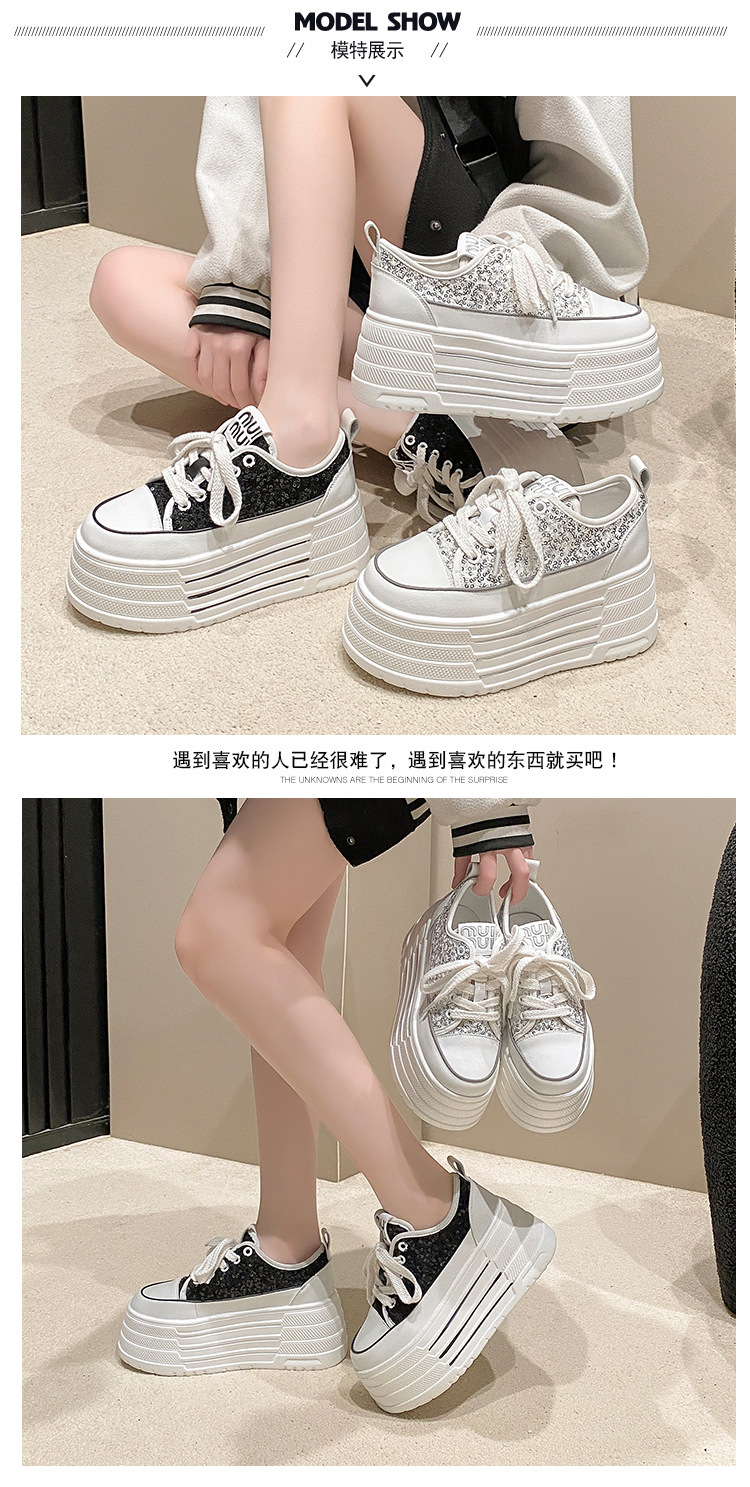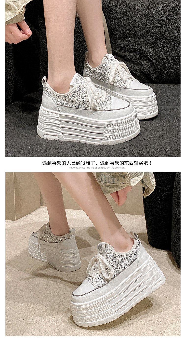 8cm 스팽글 작은 흰색 신발 여성의 2025 봄 새로운 작은 높이 스폰지 케이크 신발 캐주얼 스포츠 신발스토어 가기