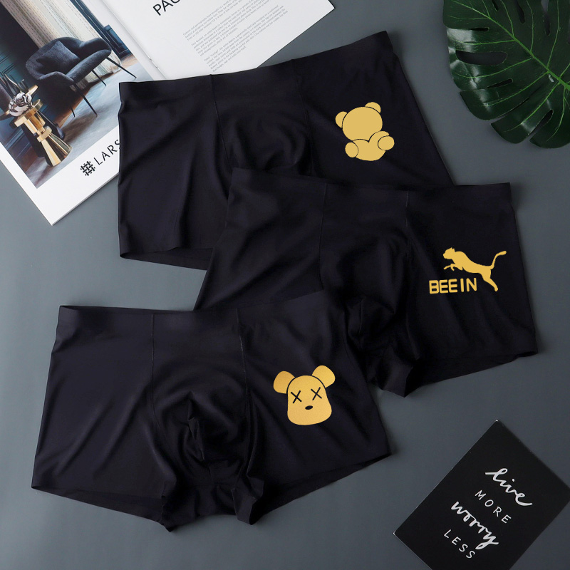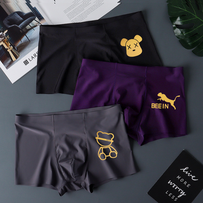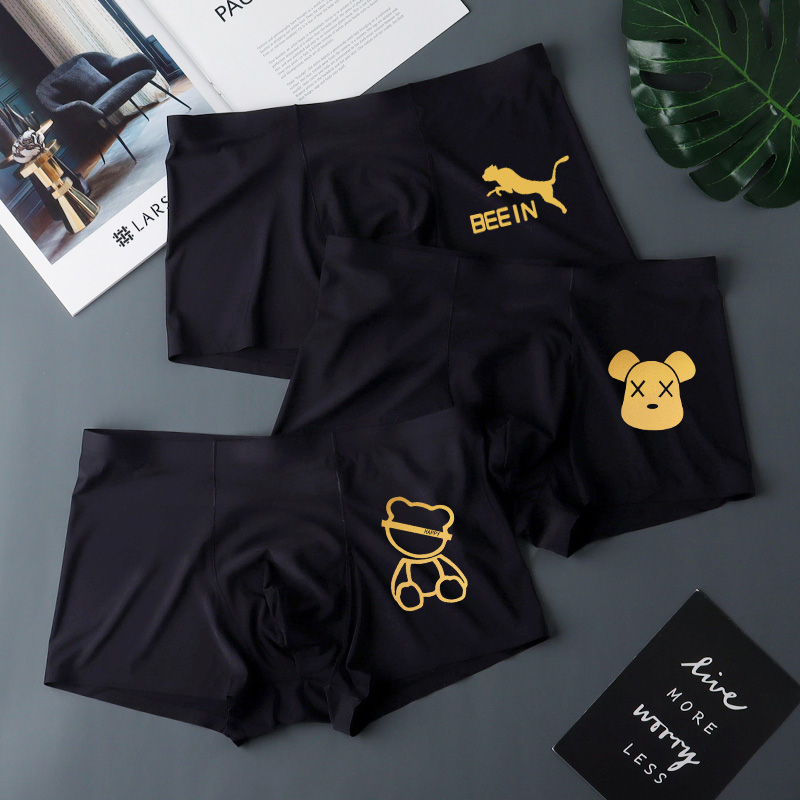 속옷 소년 아이스 실크 남자 4 개 코너 여름 얇은 추적없는 남자 바지 남자 복서 반바지 남자 블랙스토어 가기