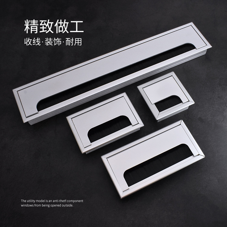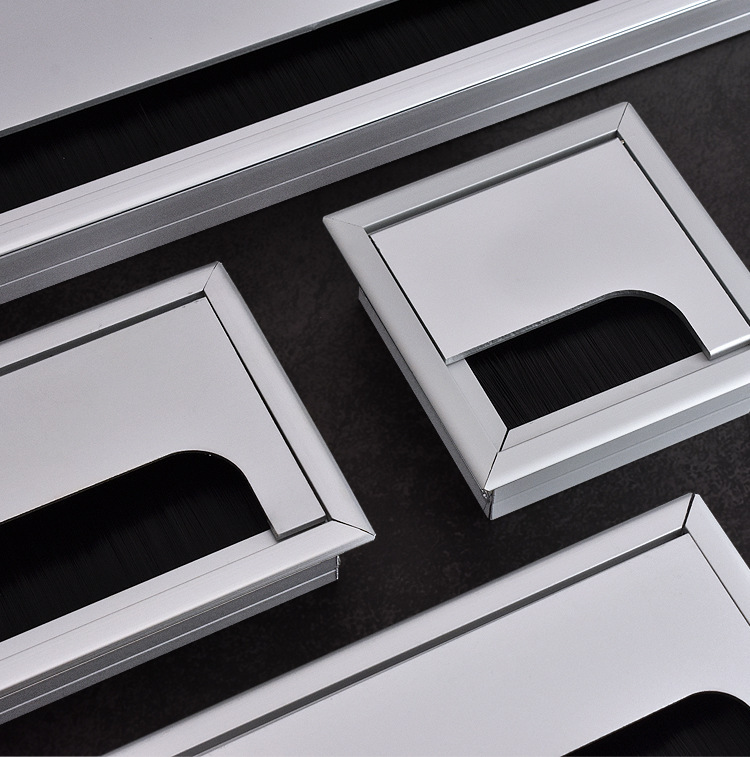 스퀘어 컴퓨터 데스크 와이어 박스 알루미늄 합금 데스크 브러시 스레딩 홀 커버 회의 테이블 실버 장식 와이어 박스
