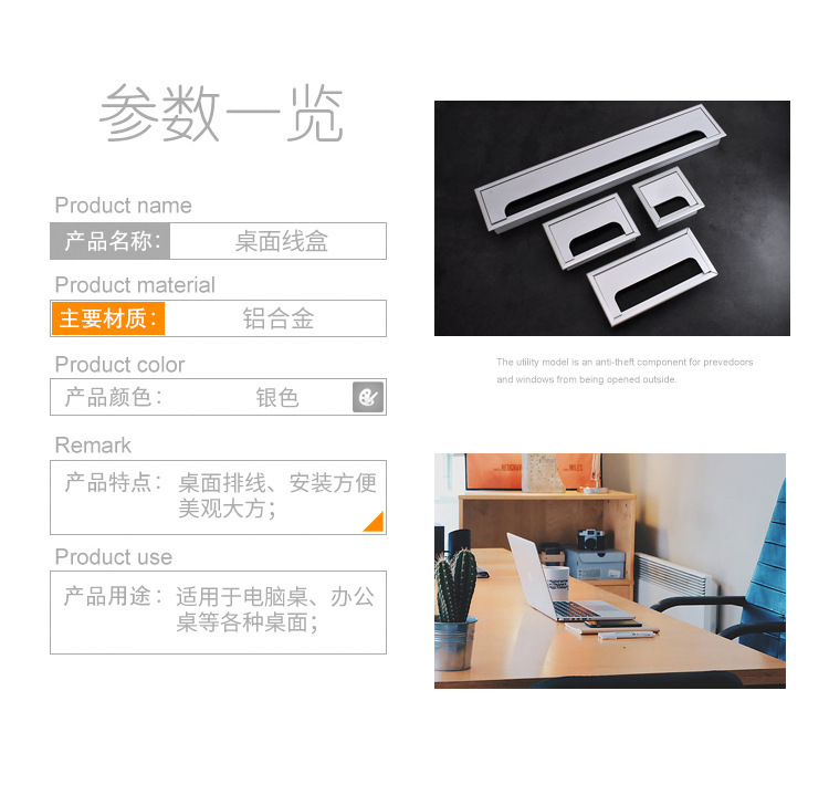스퀘어 컴퓨터 데스크 와이어 박스 알루미늄 합금 데스크 브러시 스레딩 홀 커버 회의 테이블 실버 장식 와이어 박스스토어 가기