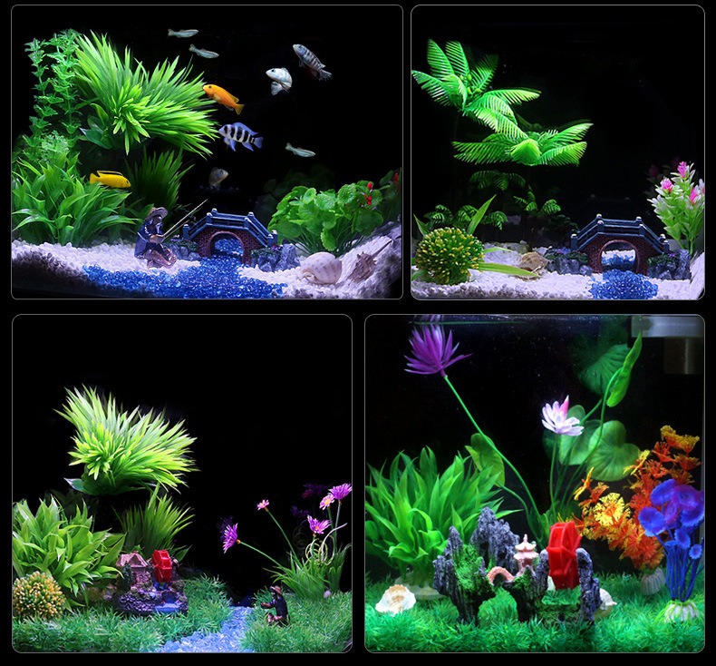 국경 간 수조 수족관 장식 시뮬레이션 수생 식물 수족관 조경 패키지 가짜 수생 식물 장식 높은 대형 수생 식물 녹색스토어 가기