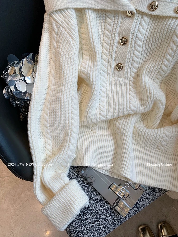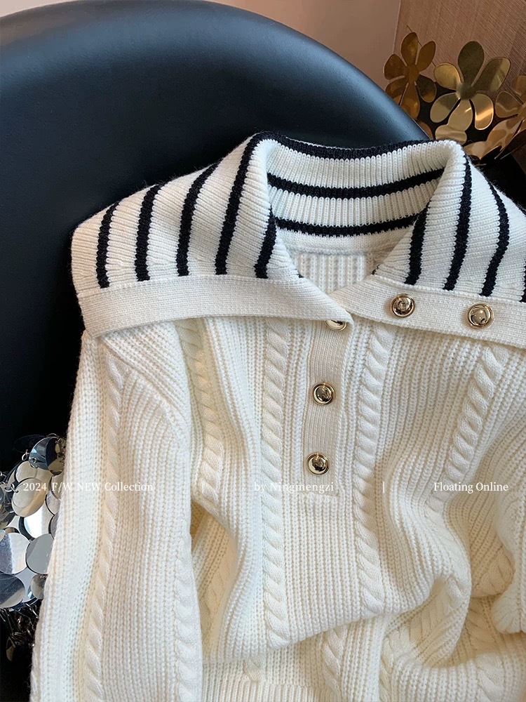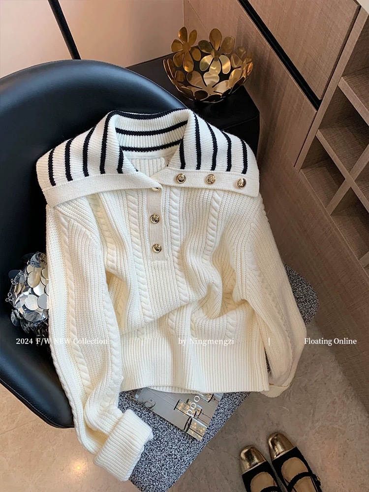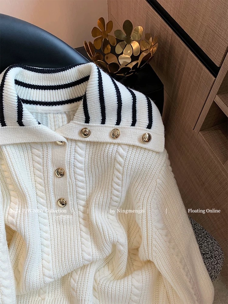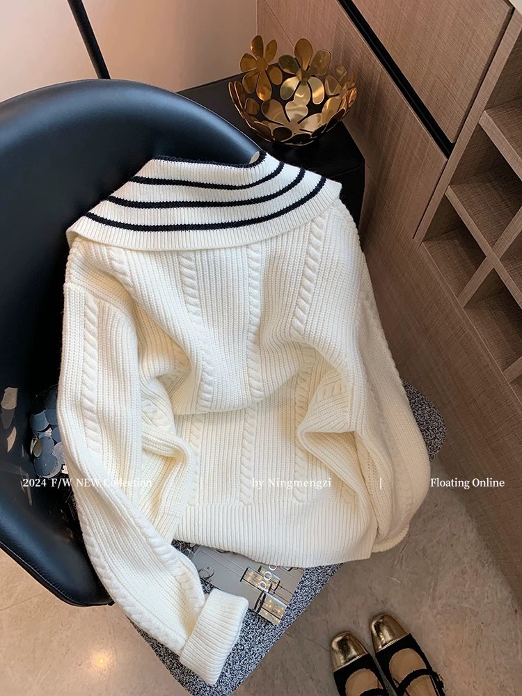 대학 스타일 줄무늬 옷깃 니트 스웨터 여성의 2024 가을과 겨울 새로운 하이 엔드 우아한 간단한 유행 탑스토어 가기