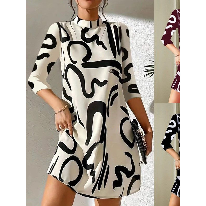 2024 유럽과 미국 국경 독립 역 AliExpress 가을 새로운 패션 인쇄 원피스 여성스토어 가기
