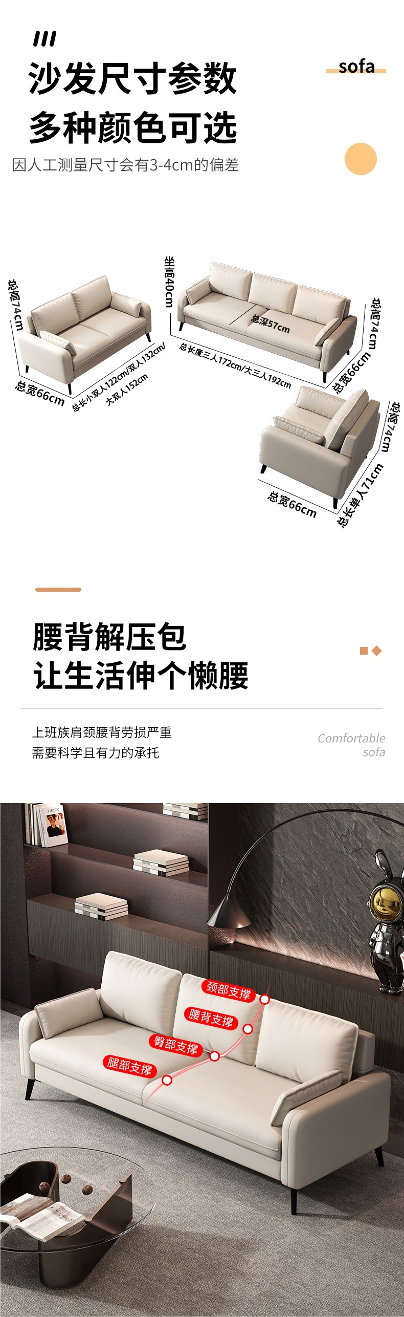 라이트 럭셔리 거실 작은 아파트 침실 아파트 렌탈 룸 의류 매장 리셉션 휴식 공간 더블 3 인 원단 소파