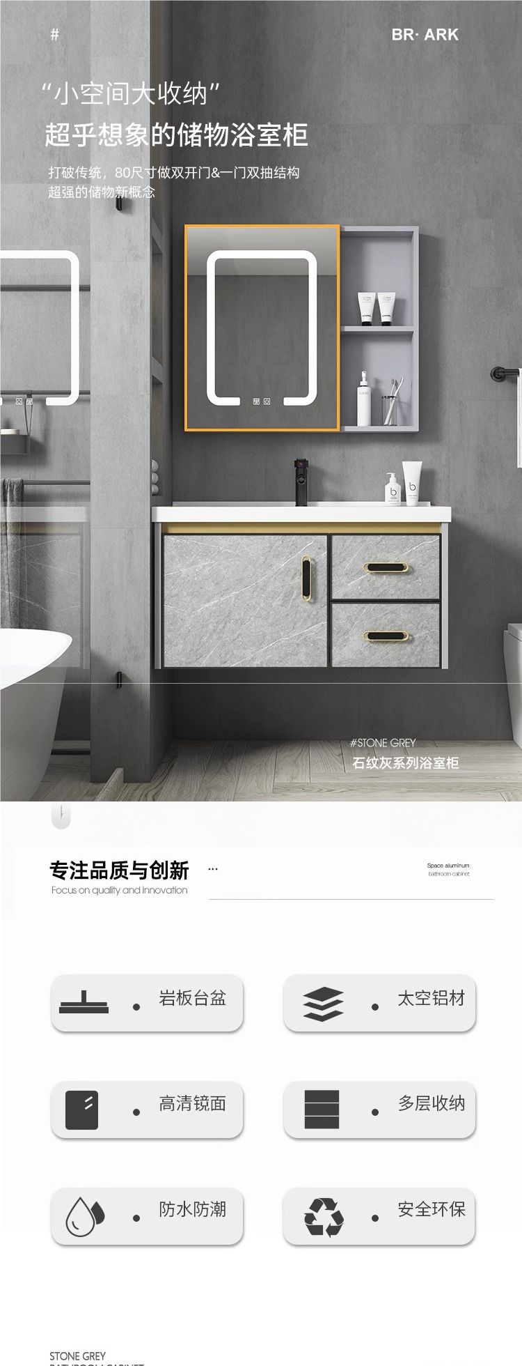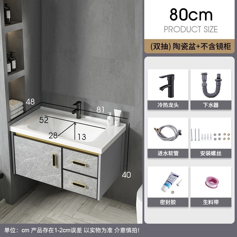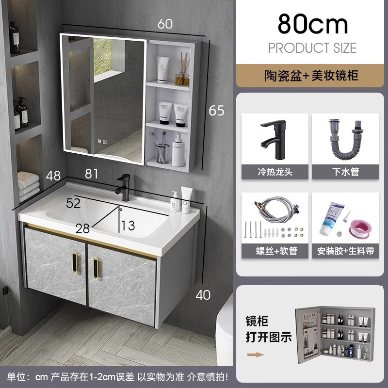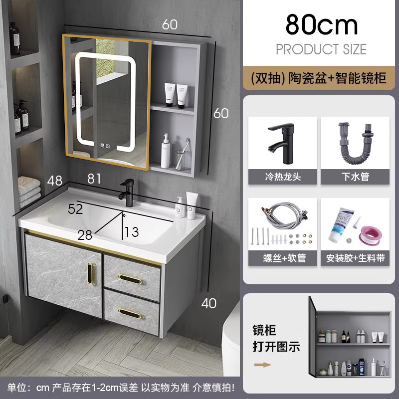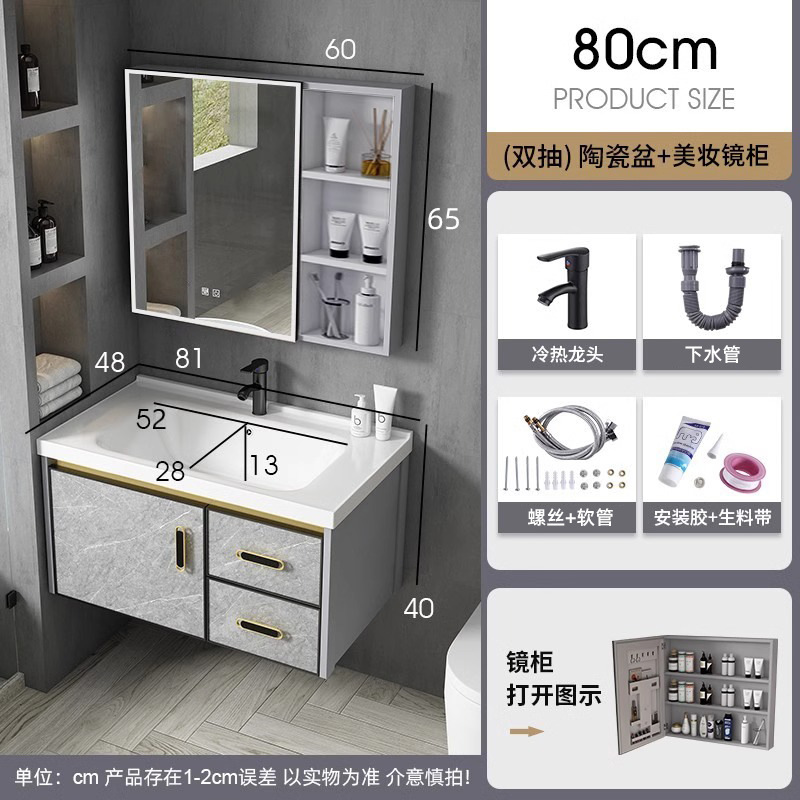 • 80 그레이 더블 펌프 평면 세면대 캐비닛 + 수도꼭지 + 김서림 방지 야광 거울 캐비닛