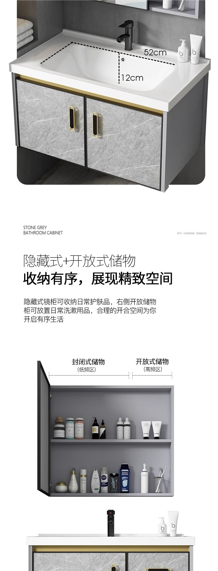 • 50 그레이 양문형 세면대 캐비닛 + 수도꼭지 + 수납 거울 캐비닛