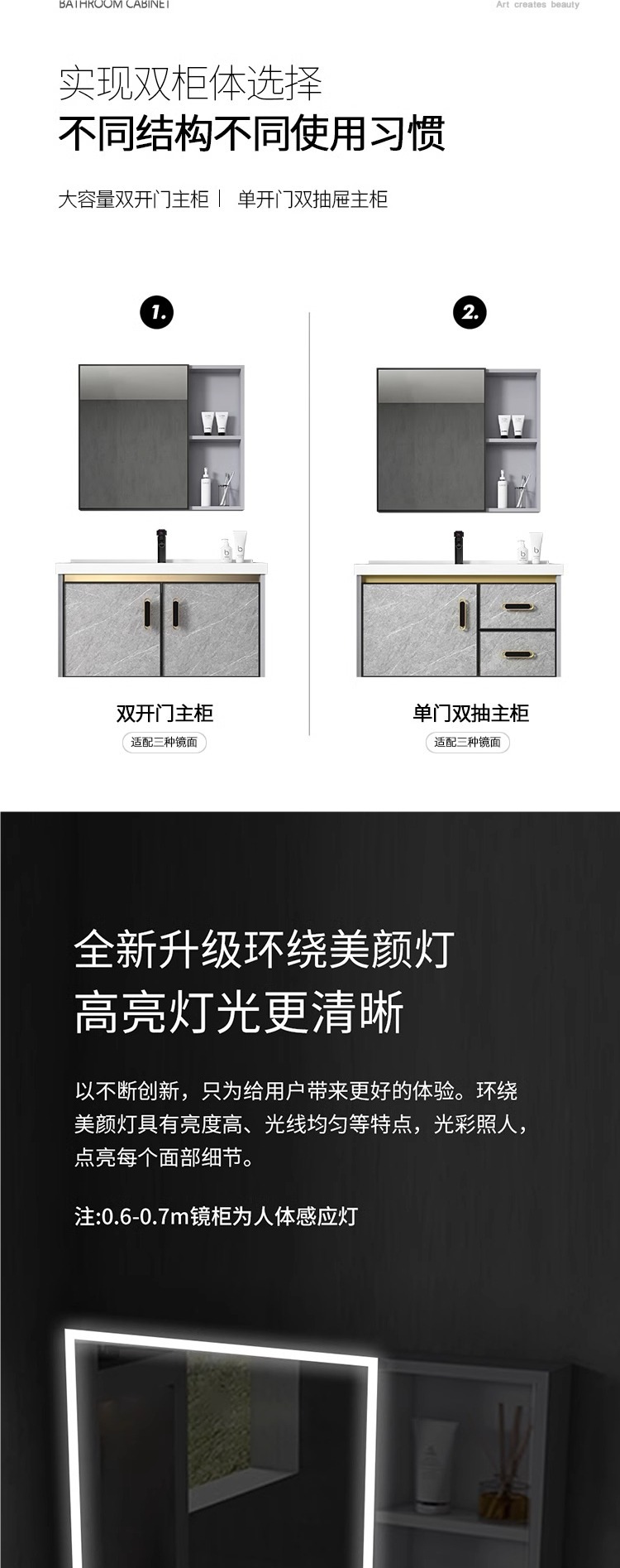 • 80 그레이 더블 펌프 - 플랫 세면대 캐비닛 + 수도꼭지 + 스마트 뷰티 미러 캐비닛