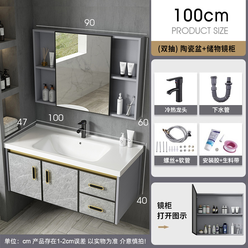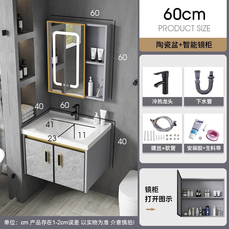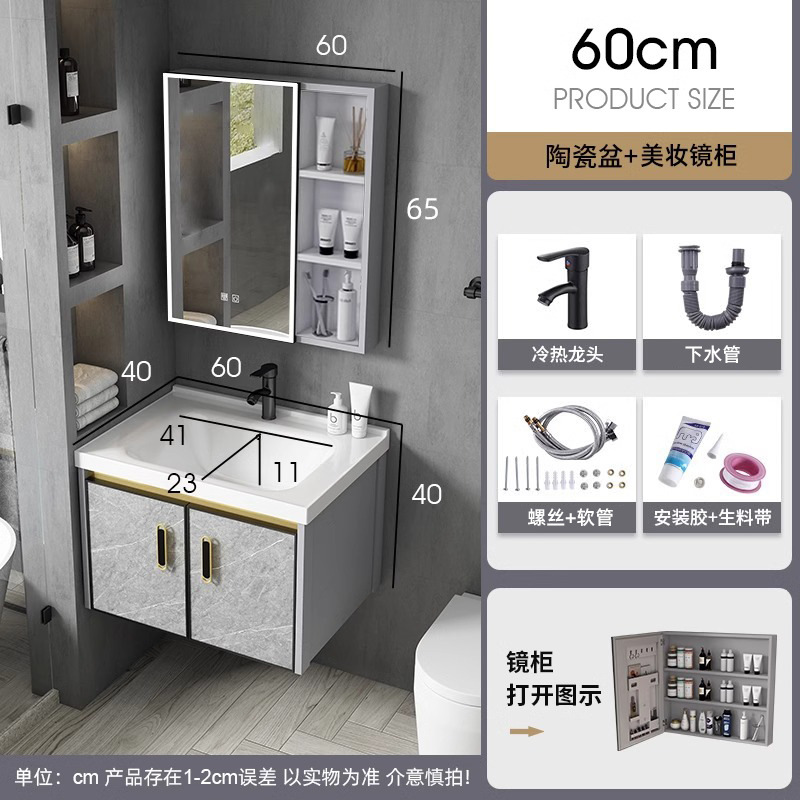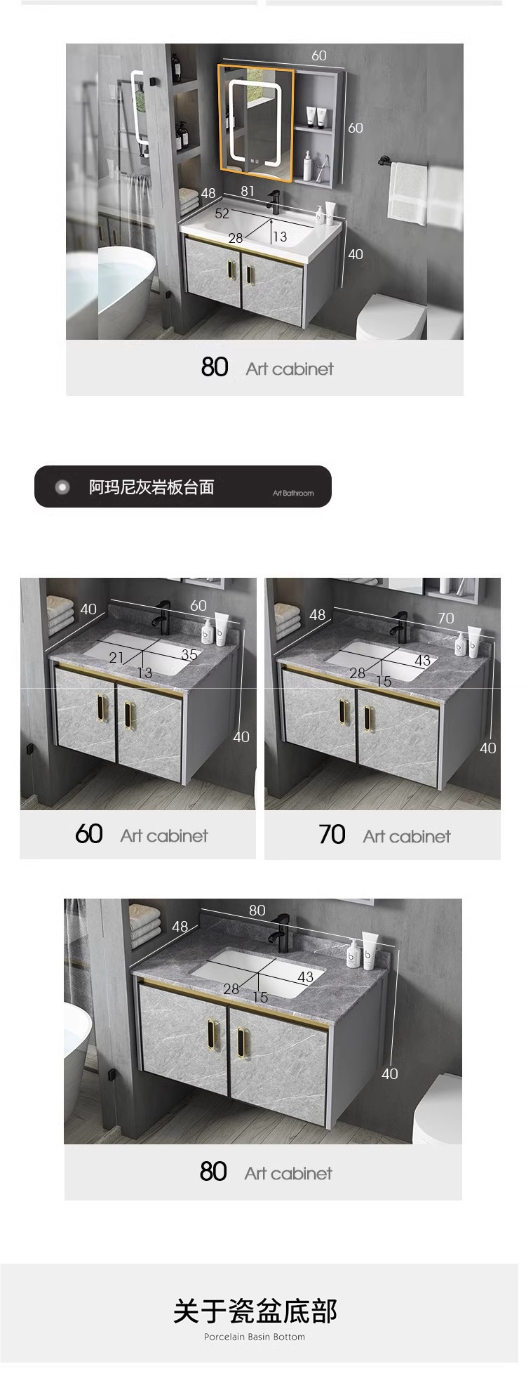 욕실 작은 아파트 공간 알루미늄 욕실 캐비닛 조합 현대 워시 분지 세척 테이블 욕실 통합 워시 분지 수영장스토어 가기