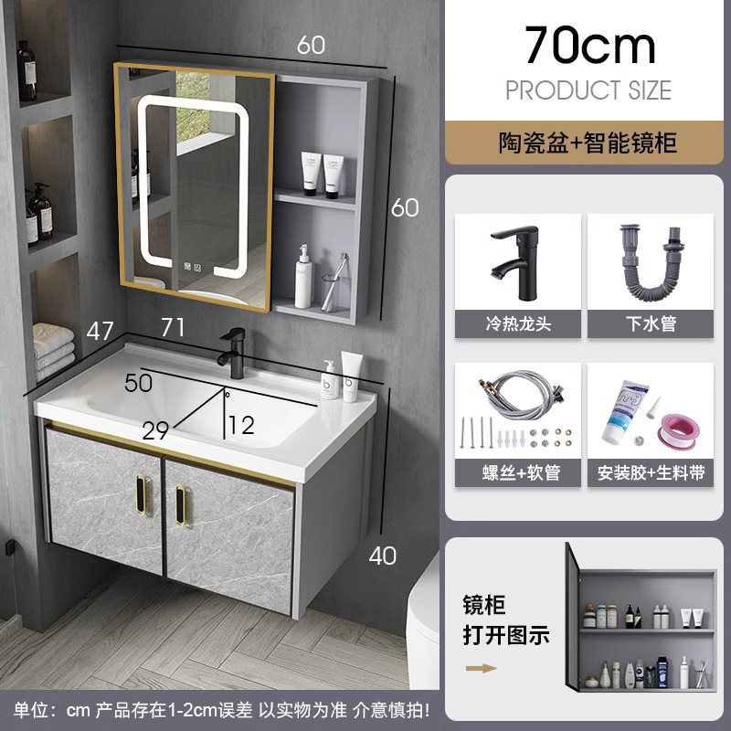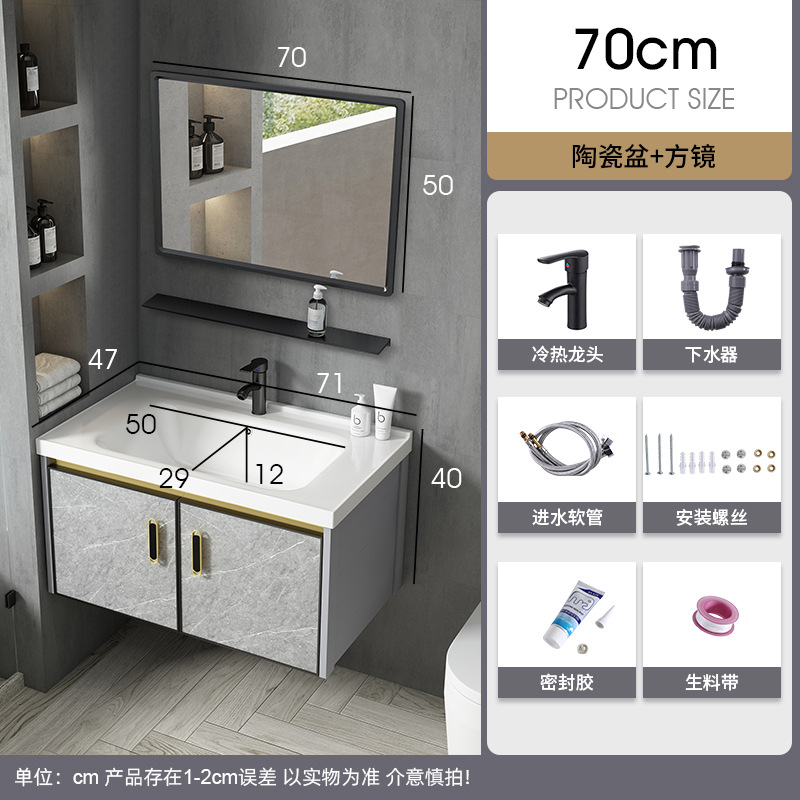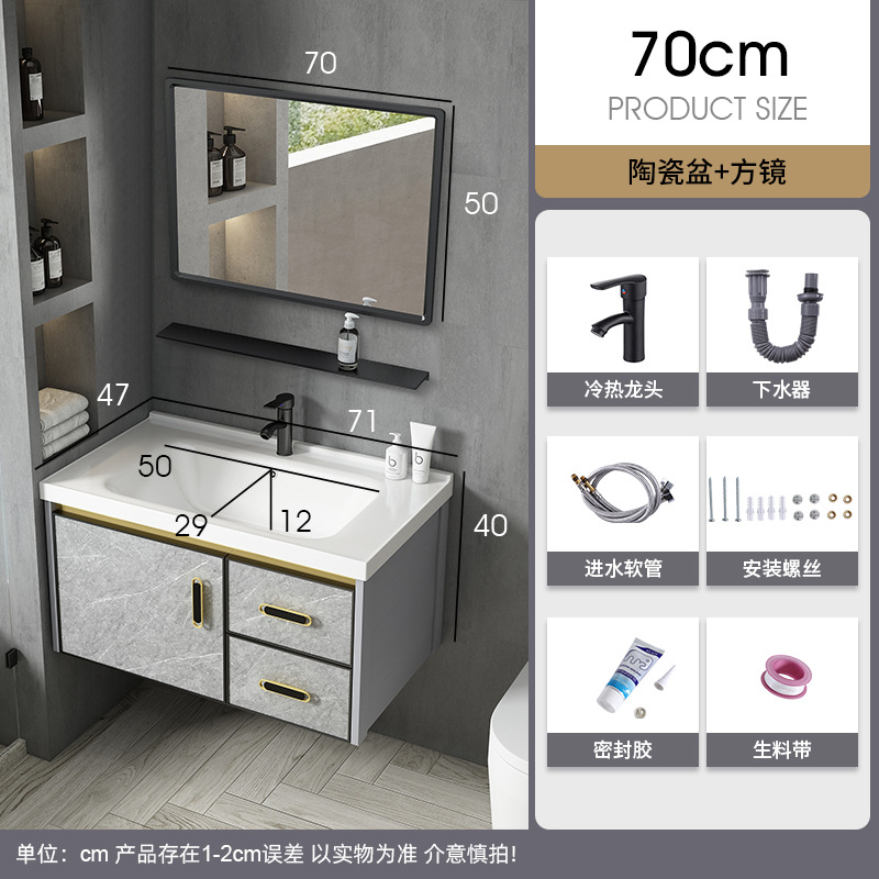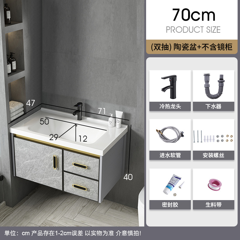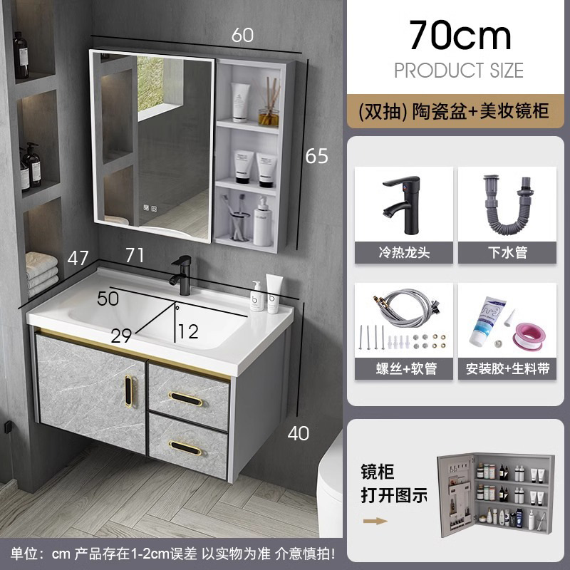 • 70 그레이 더블 펌프 평면 세면대 캐비닛 + 수도꼭지 + 김서림 방지 야광 거울 캐비닛
