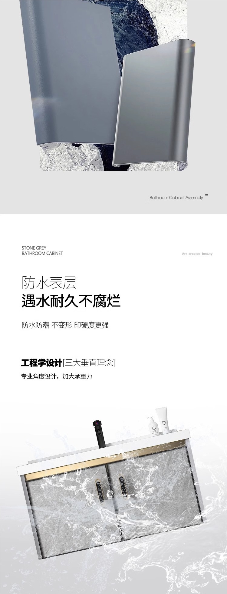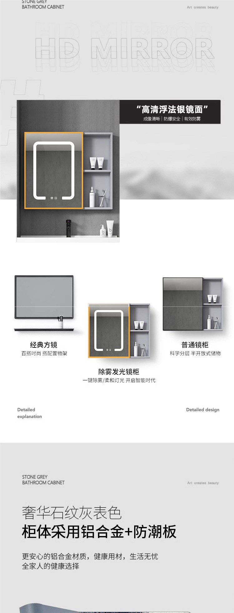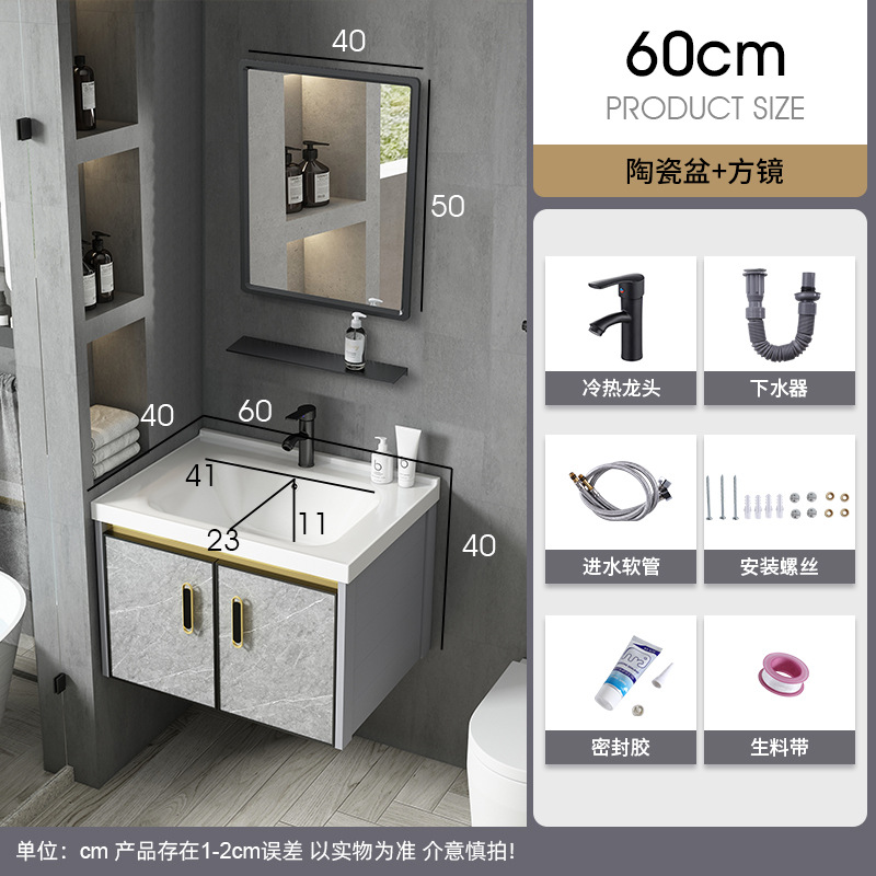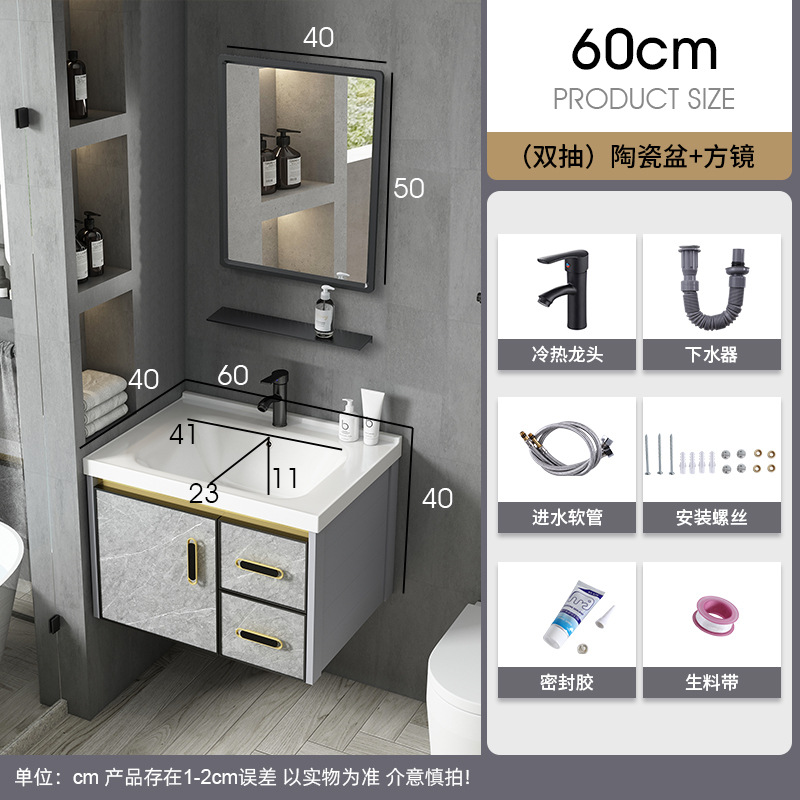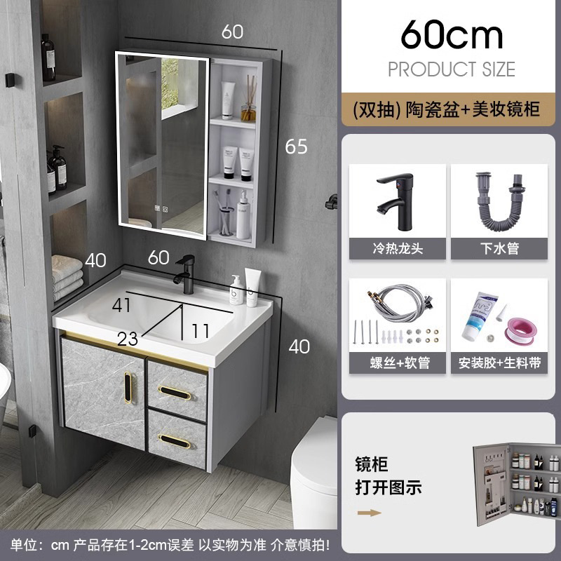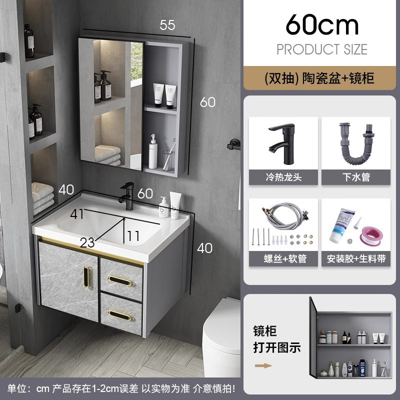 • 6040 그레이 더블 펌프 평면 세면대 캐비닛 + 수도꼭지 + 김서림 방지 야광 거울 캐비닛