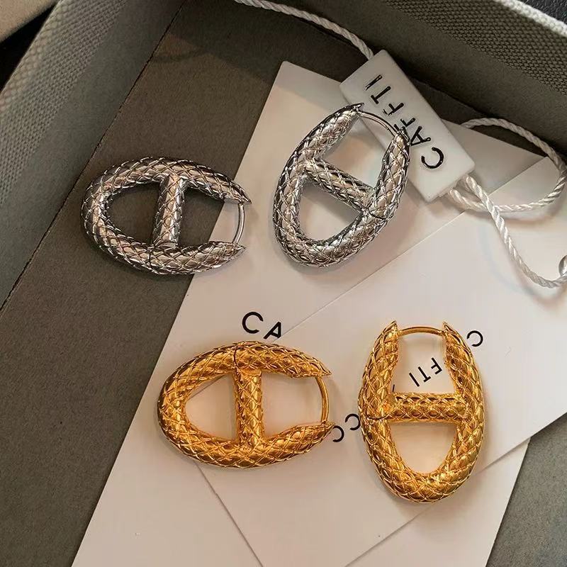 고급 감각 골드 및 실버 돼지 코 기하학적 귀 버클 우아한 빛 럭셔리 틈새 디자인 귀걸이 가을 및 겨울 패션 귀걸이 여성용스토어 가기