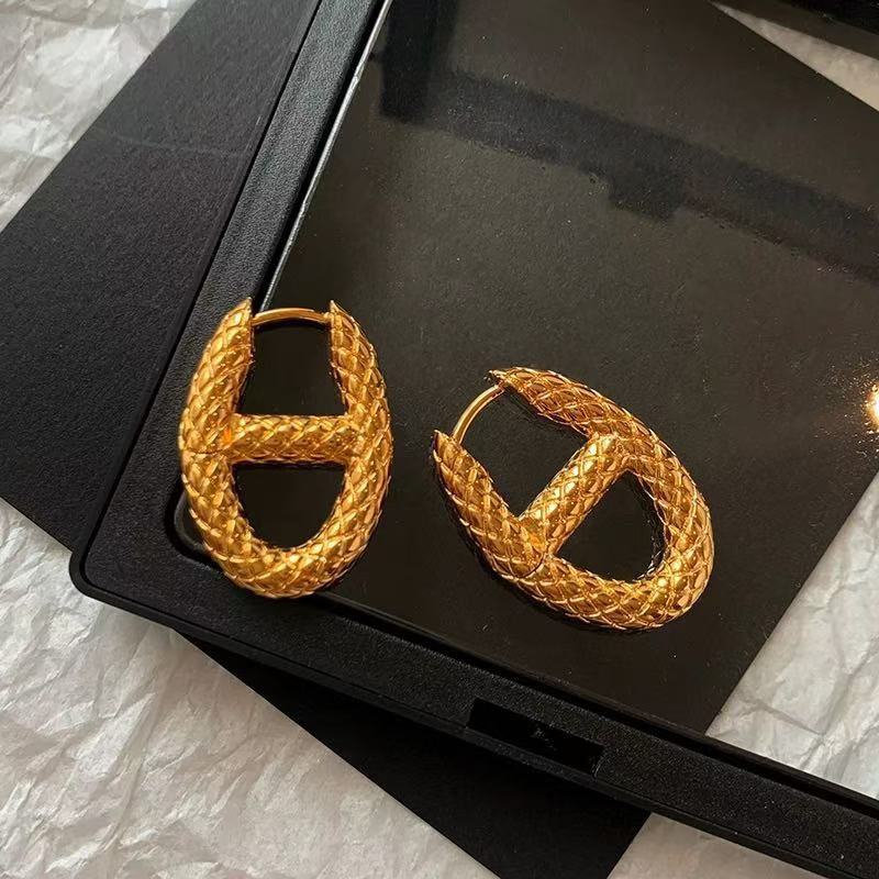 고급 감각 골드 및 실버 돼지 코 기하학적 귀 버클 우아한 빛 럭셔리 틈새 디자인 귀걸이 가을 및 겨울 패션 귀걸이 여성용