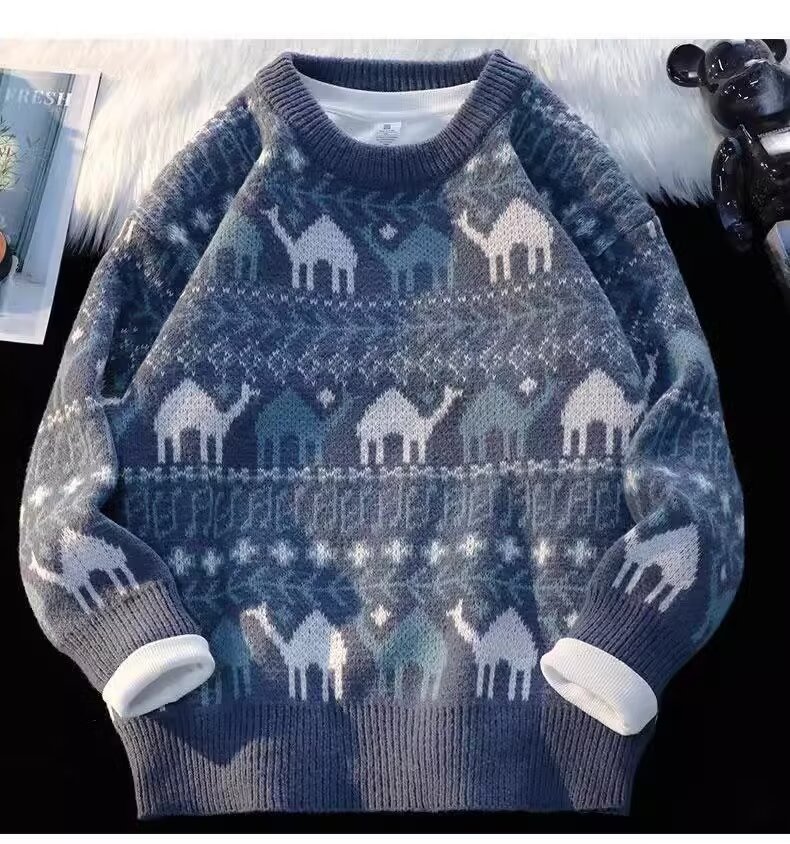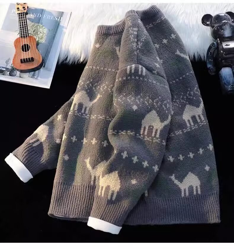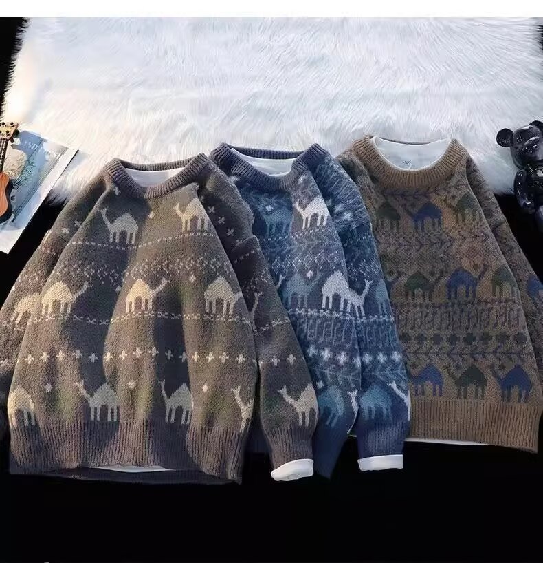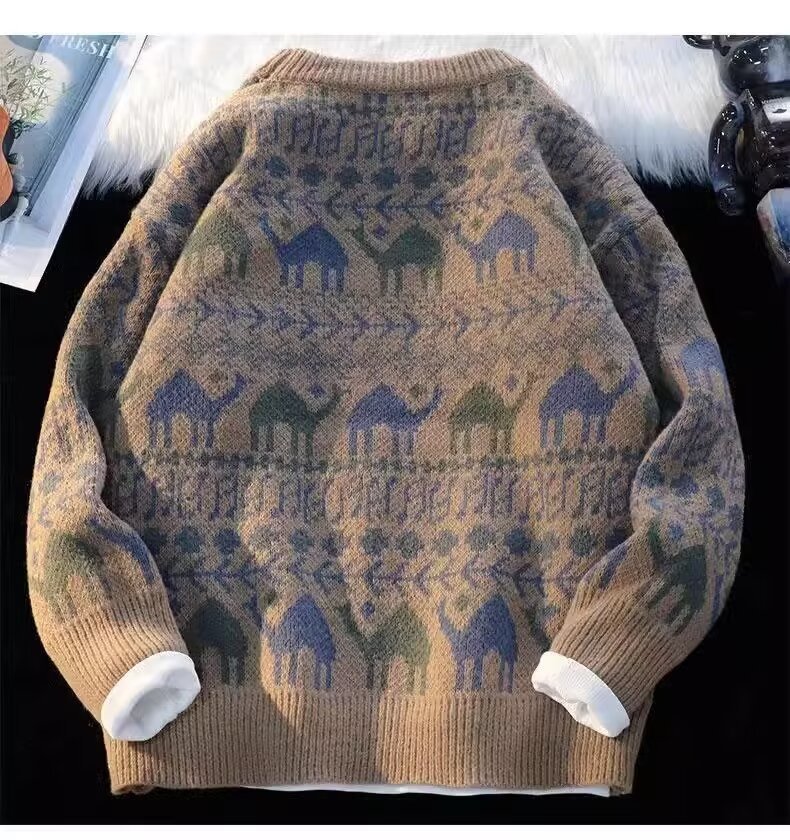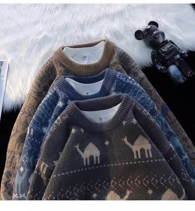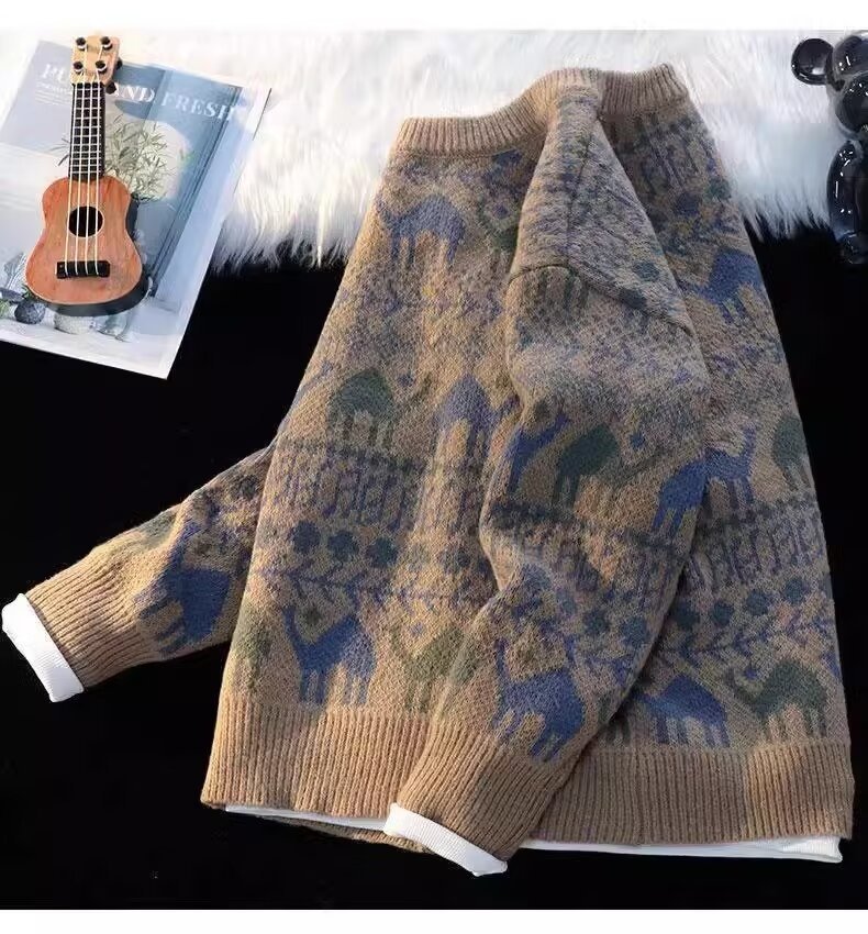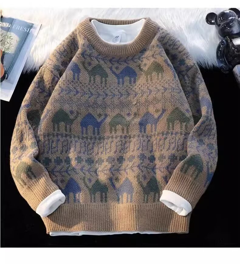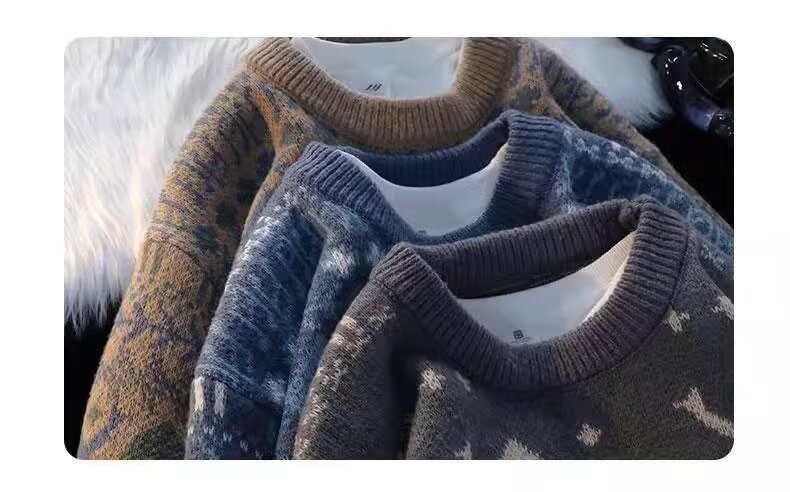 빈티지 크루 넥 스웨터 젊은 남성의 가을과 겨울 독특한 자카드 디자인 센스 따뜻한 캐주얼 스웨터 남성용 코트스토어 가기