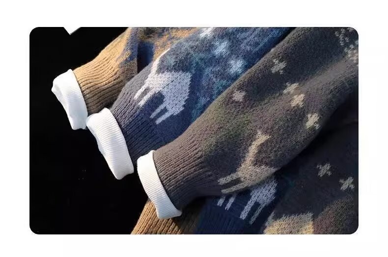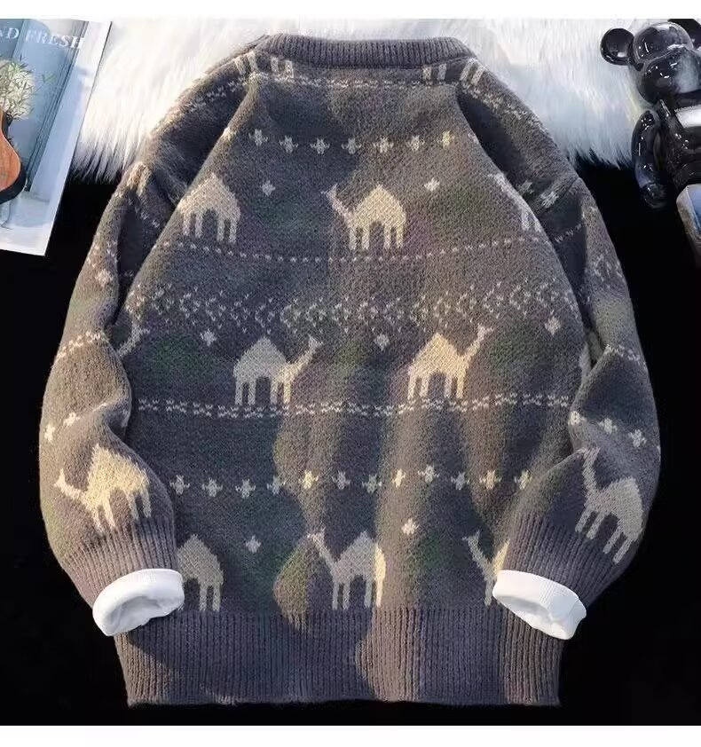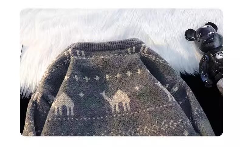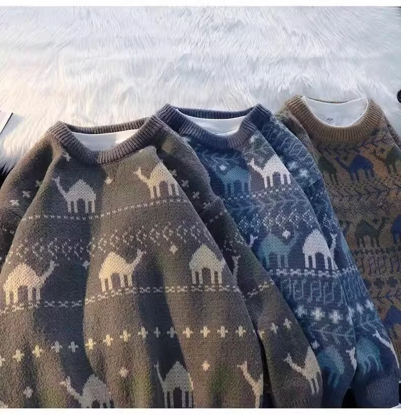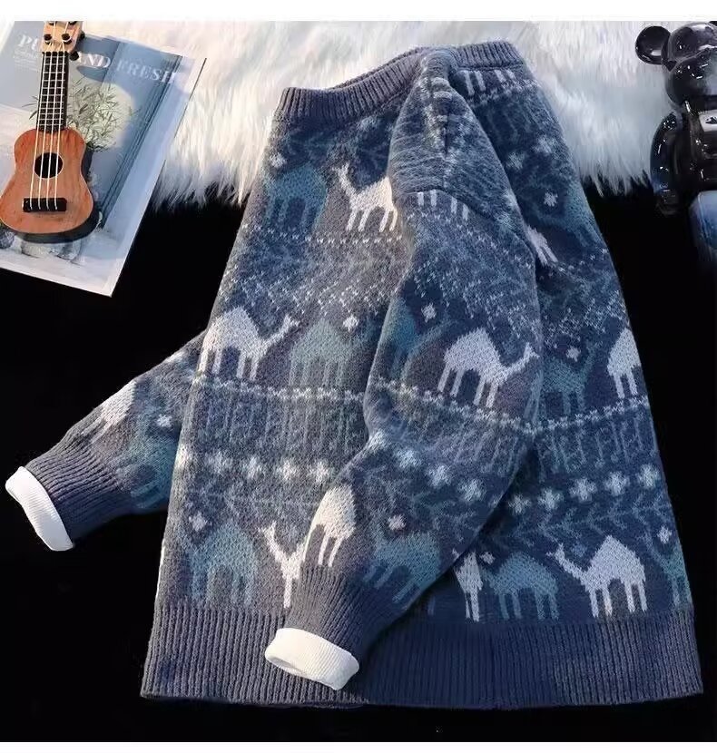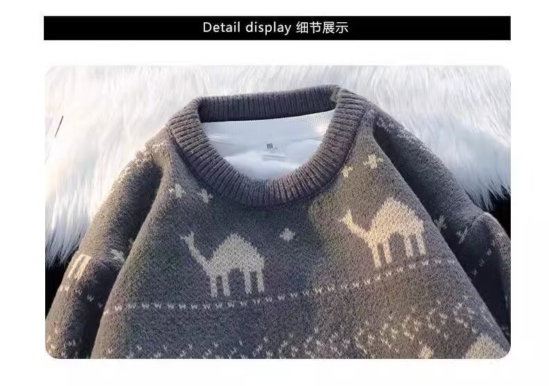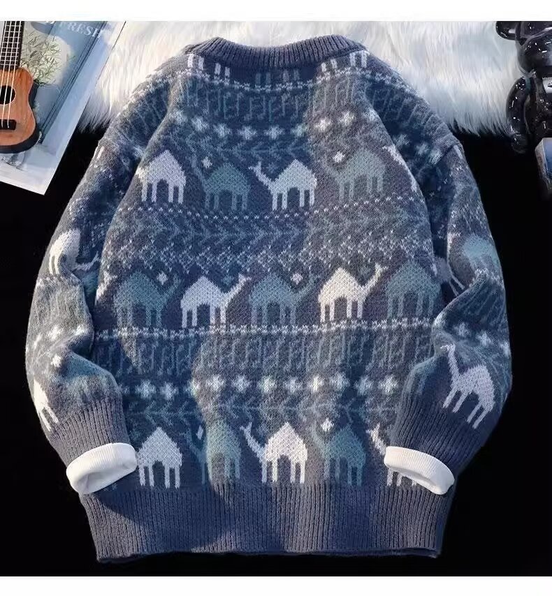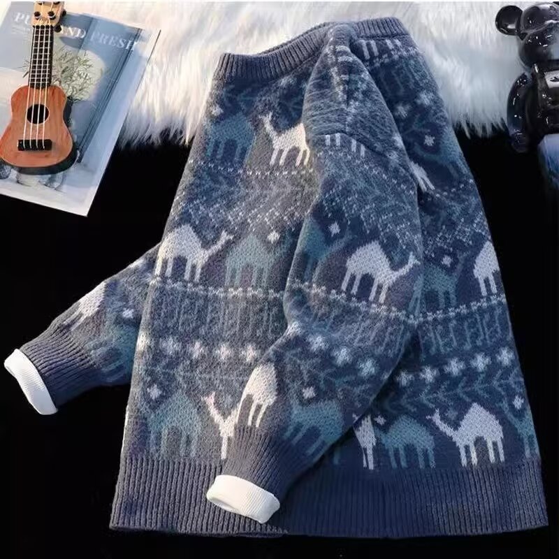 빈티지 크루 넥 스웨터 젊은 남성의 가을과 겨울 독특한 자카드 디자인 센스 따뜻한 캐주얼 스웨터 남성용 코트스토어 가기