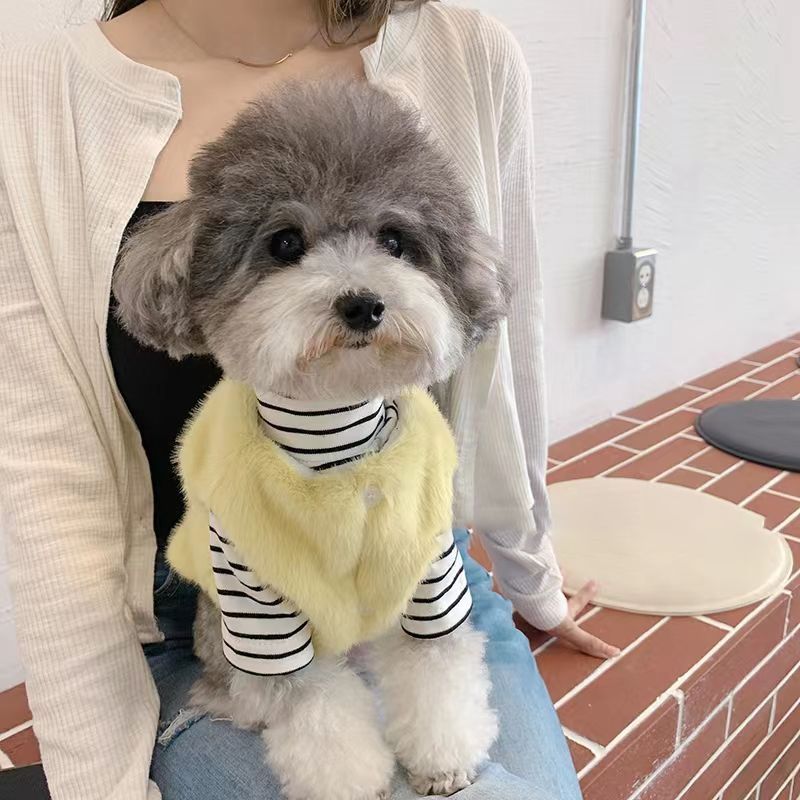 개 옷 가을과 겨울 새로운 줄무늬 외국 스타일 따뜻한 두꺼운 귀여운 테디 작은 개 고양이 옷 기초