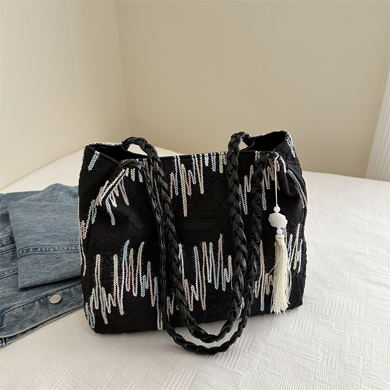 时尚潮流大容量2024新款洋气亮片设计休闲时尚手提托特单肩包包女