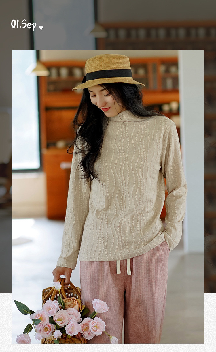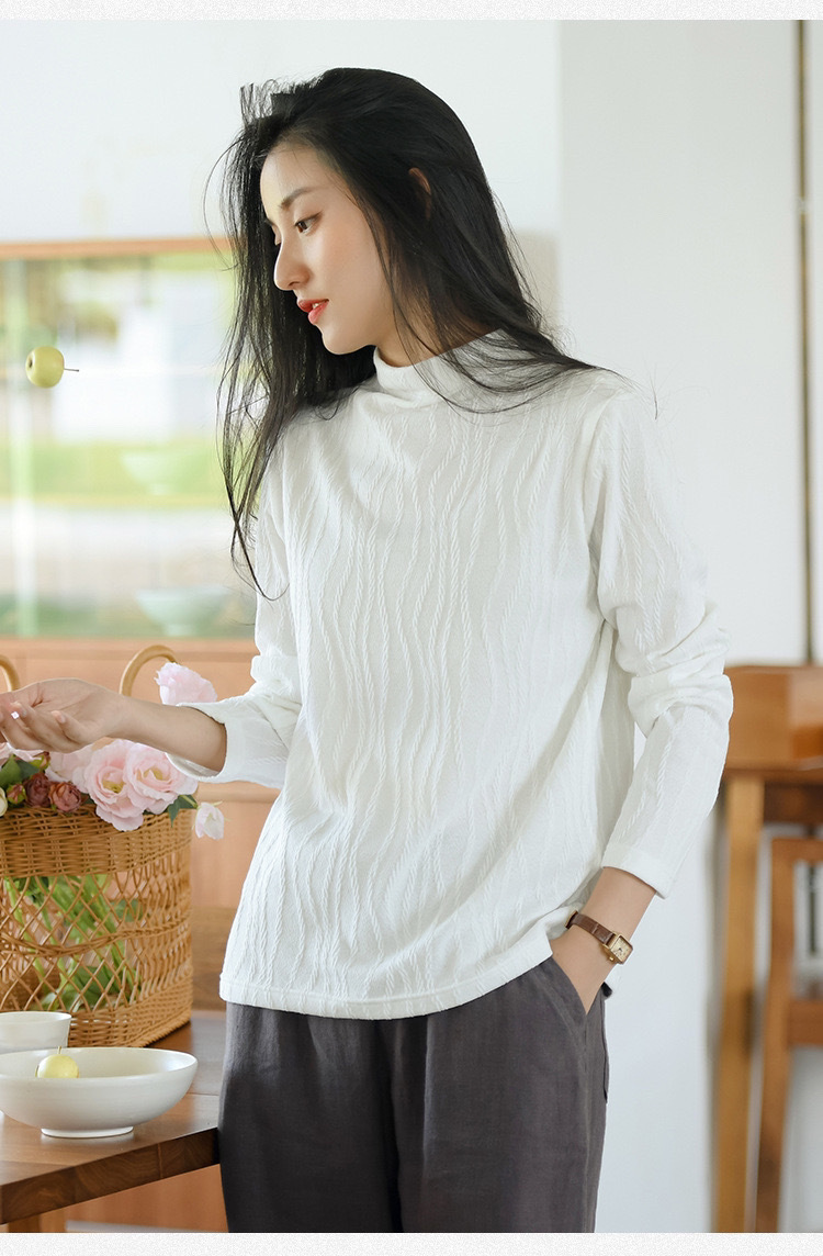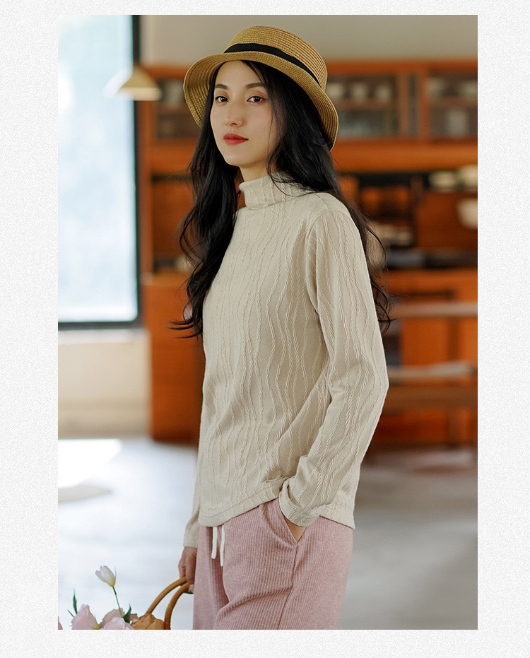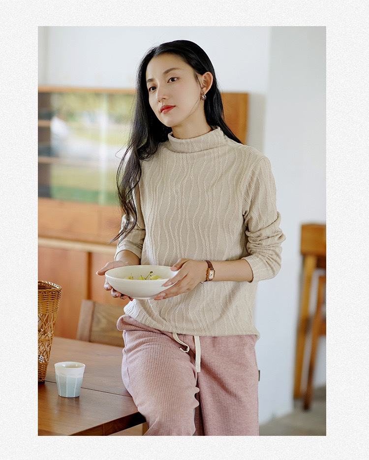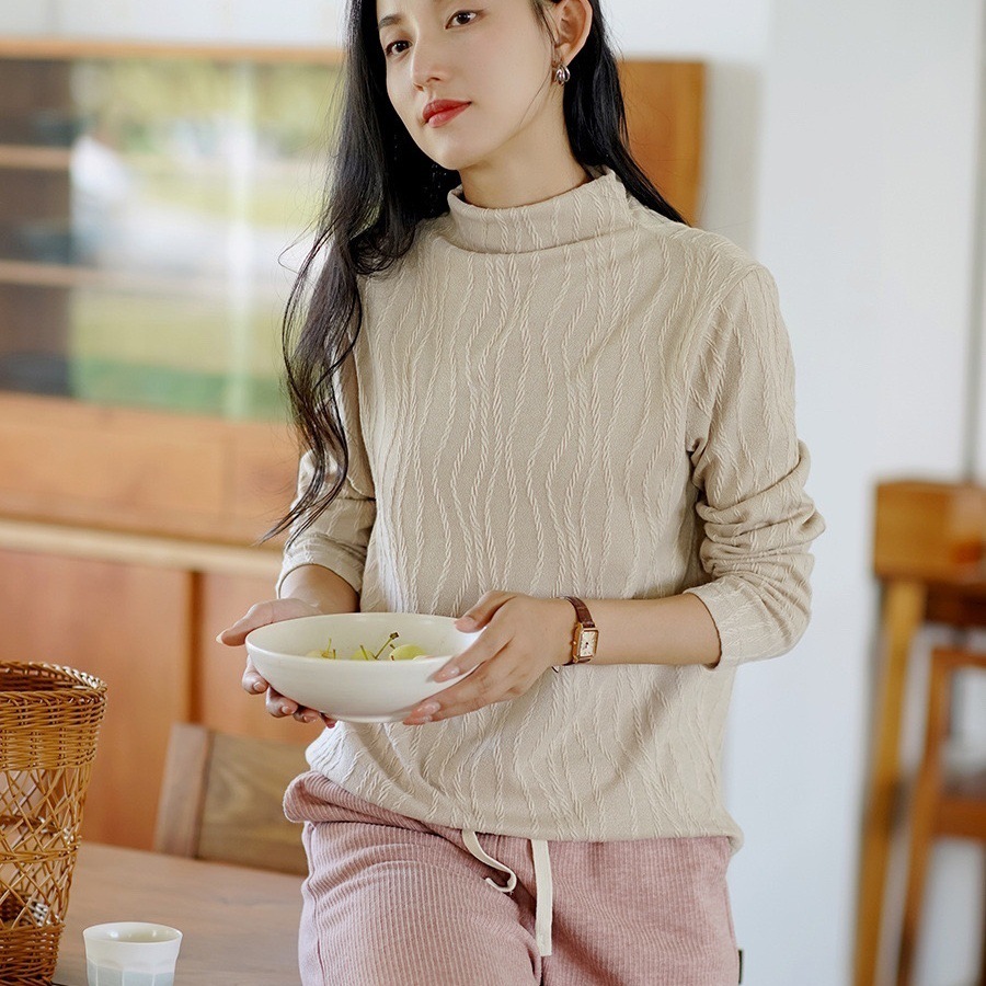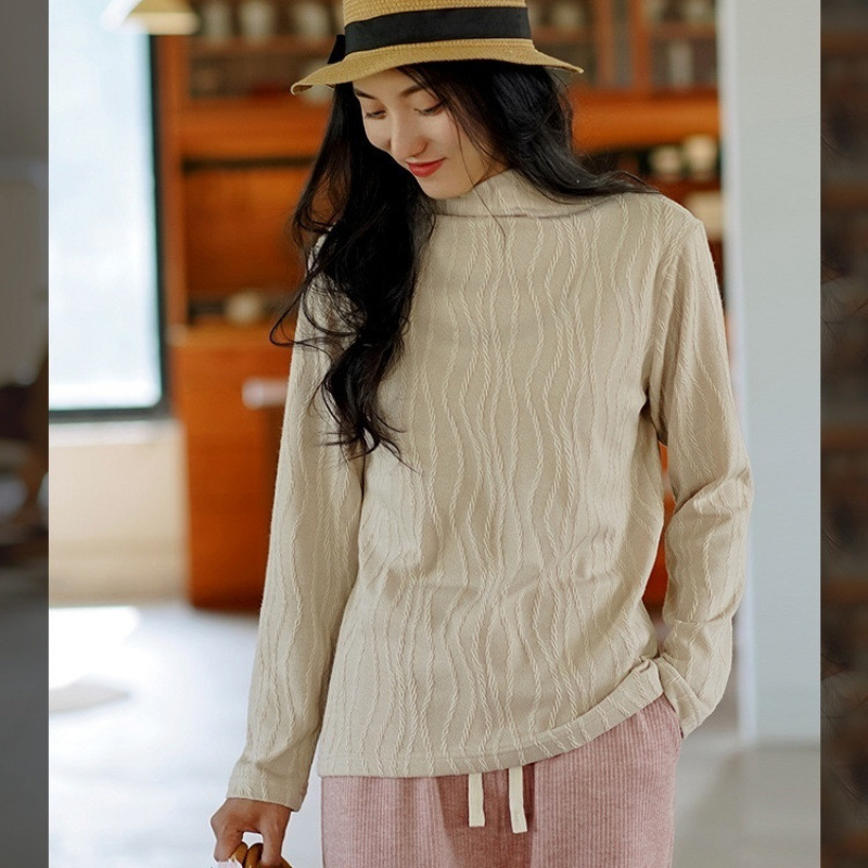 2024 봄과 가을 새로운 반 터틀넥베이스 셔츠 여성용 스웨터 레트로 자카드 내부 고급 탑 아우터웨어스토어 가기