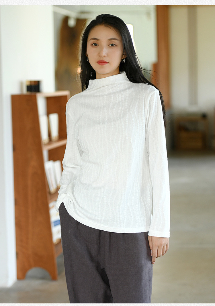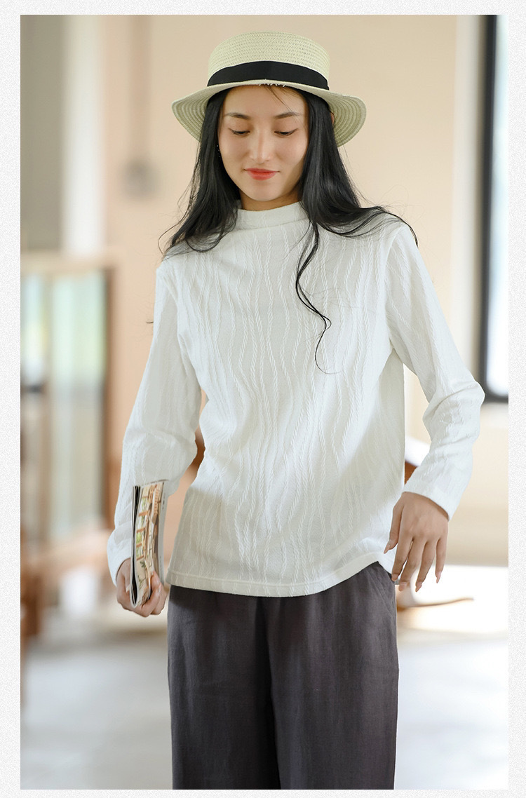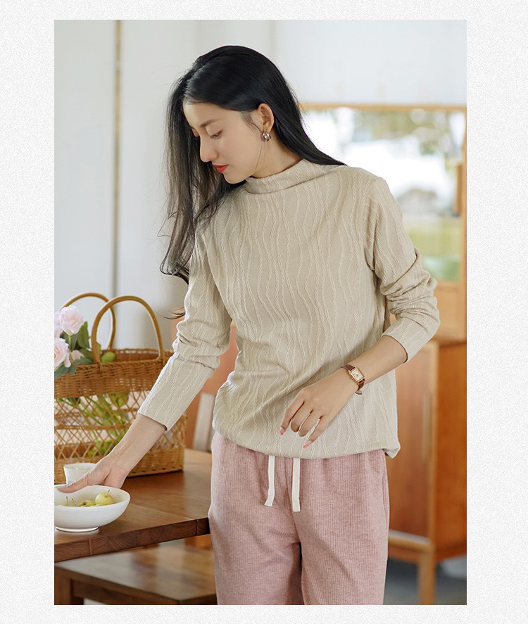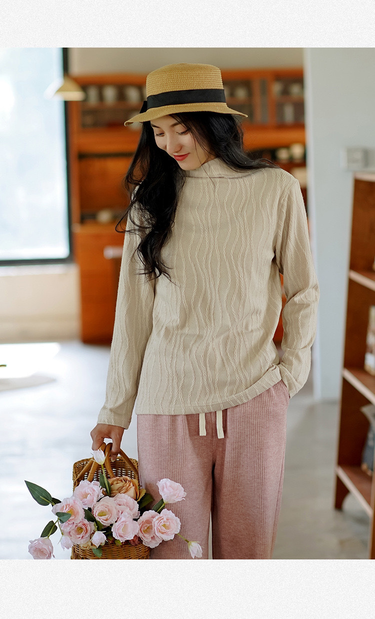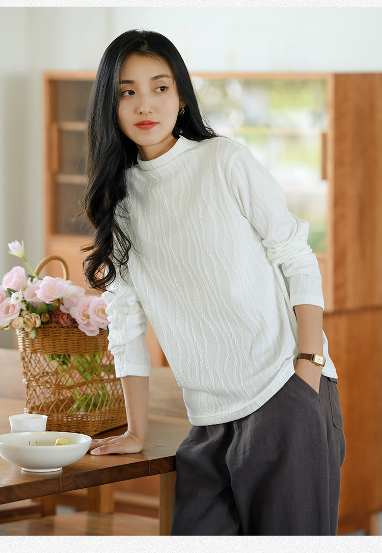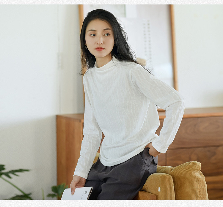 2024 봄과 가을 새로운 반 터틀넥베이스 셔츠 여성용 스웨터 레트로 자카드 내부 고급 탑 아우터웨어스토어 가기