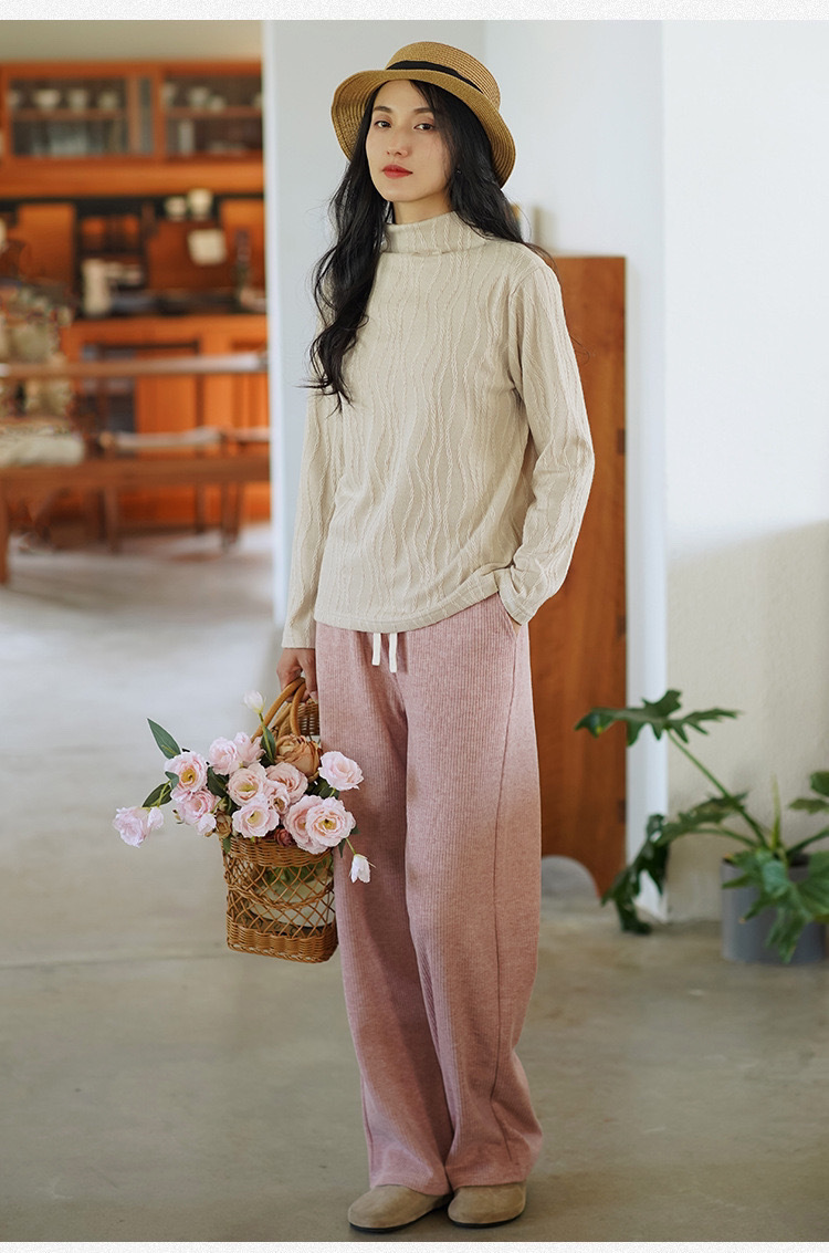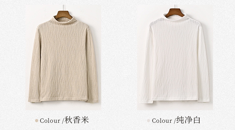 2024 봄과 가을 새로운 반 터틀넥베이스 셔츠 여성용 스웨터 레트로 자카드 내부 고급 탑 아우터웨어