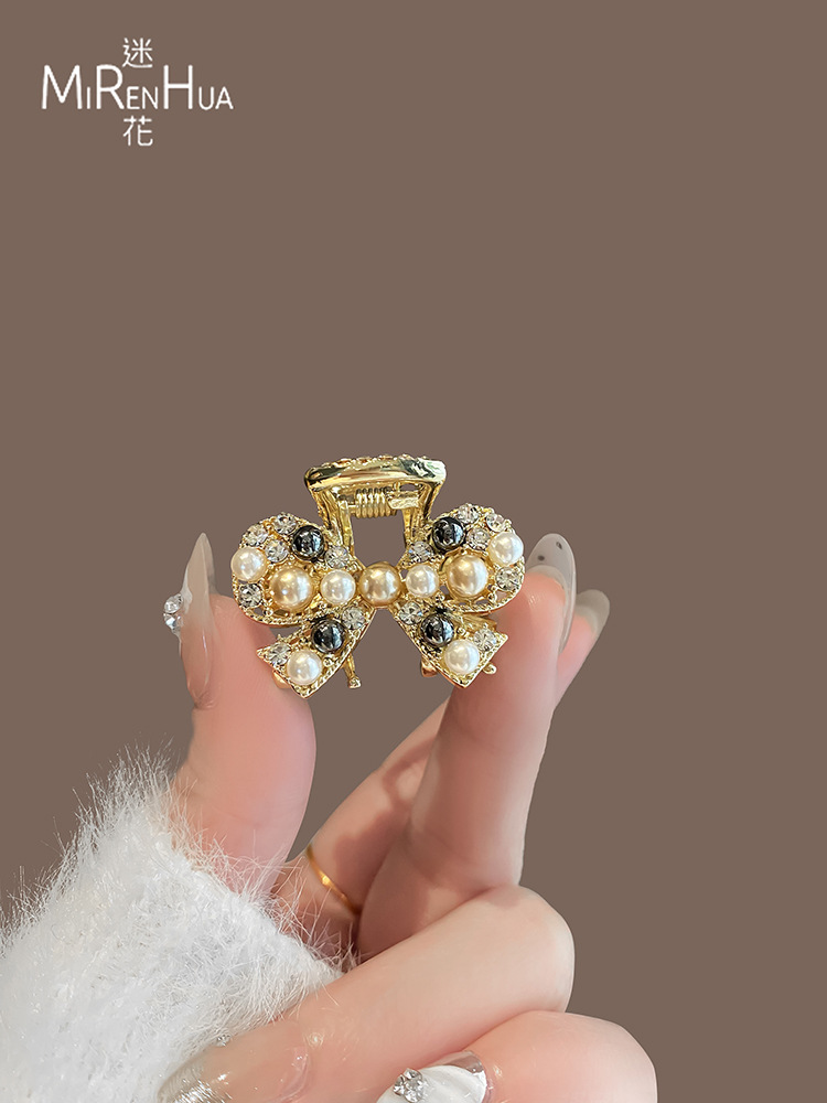 절묘한 작은 진주 활 작은 그랩 클립 고급 센스 깨진 머리 뱅 클립 측면 머리핀 기질 머리핀 상단 클립스토어 가기