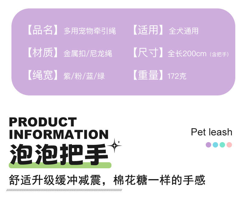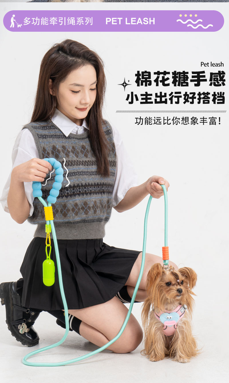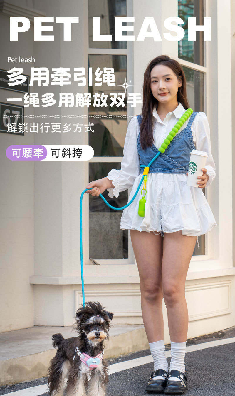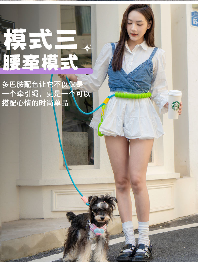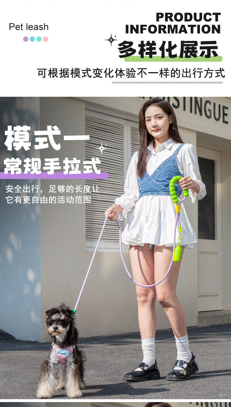 새로운 애완 동물 견인 로프 다기능 조정 가능한 견인 로프 폭발 방지 펀치는 P 로프 중형 및 대형 개 P 체인을 사용할 수 있습니다.스토어 가기