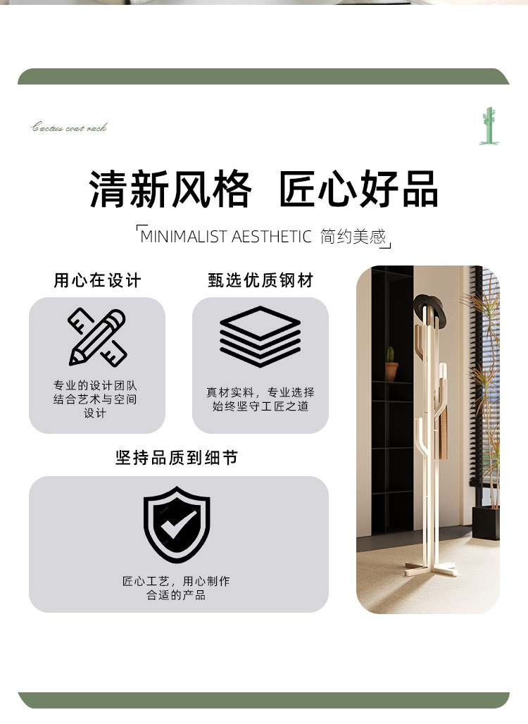 이동식 홈 디자이너 플로어 행거, 미니멀리스트 선인장 코트 랙 거실 침실 옷걸이