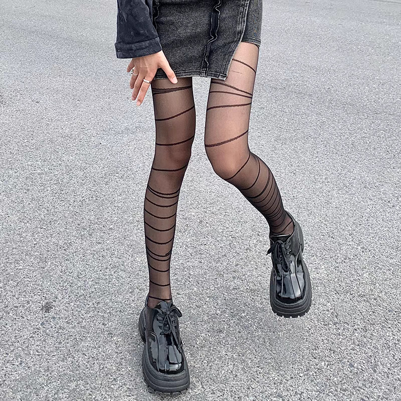 Y2K 줄무늬 실크 스타킹 여성 봄 여름 가을 얇은 틈새 디자인 센스 메일러 컬러 수평 라인 하단 팬티 스타킹스토어 가기