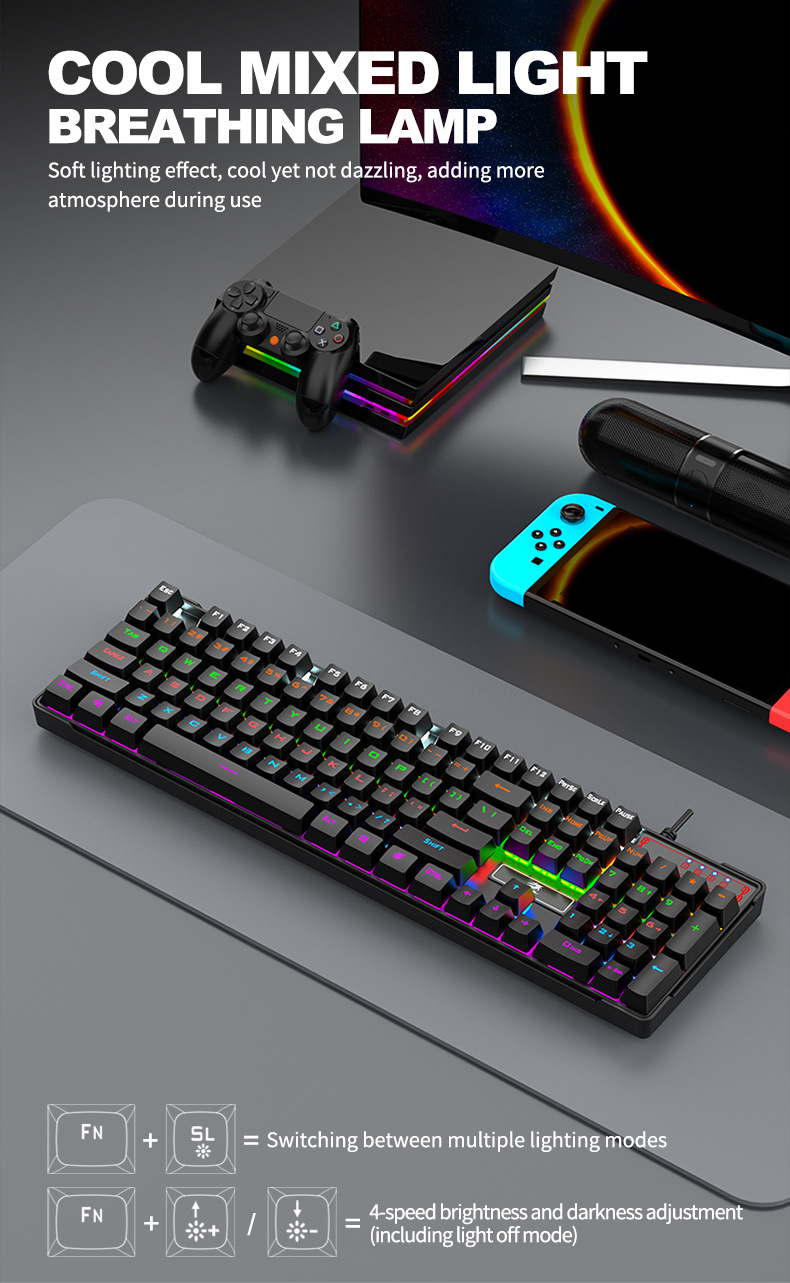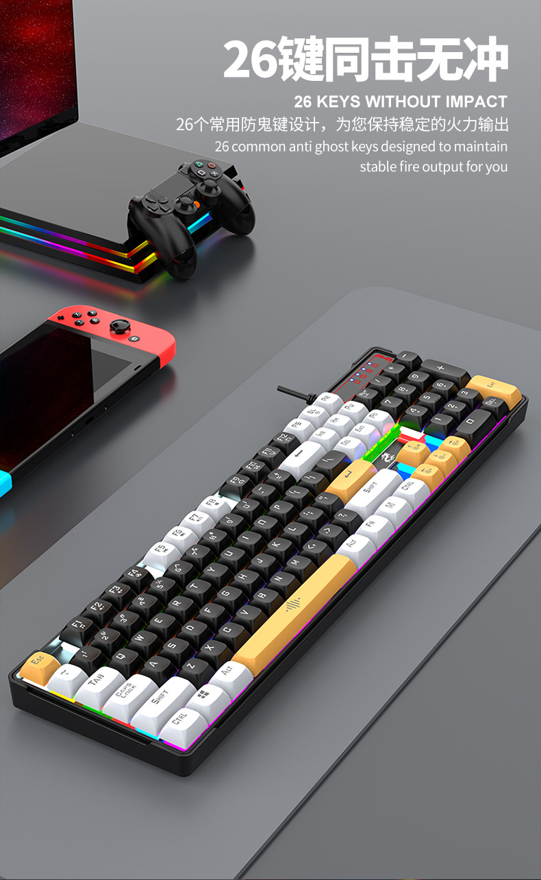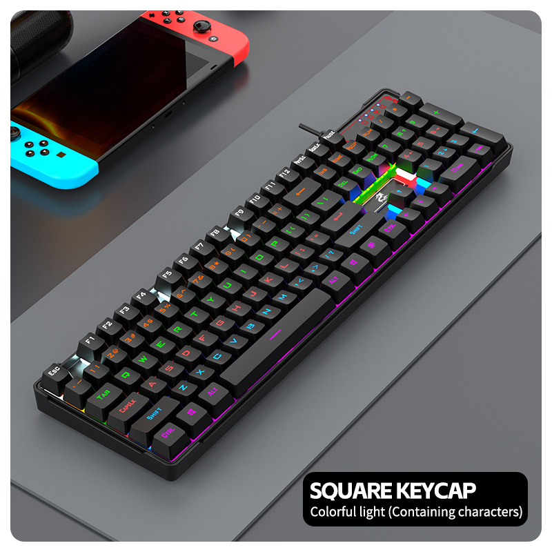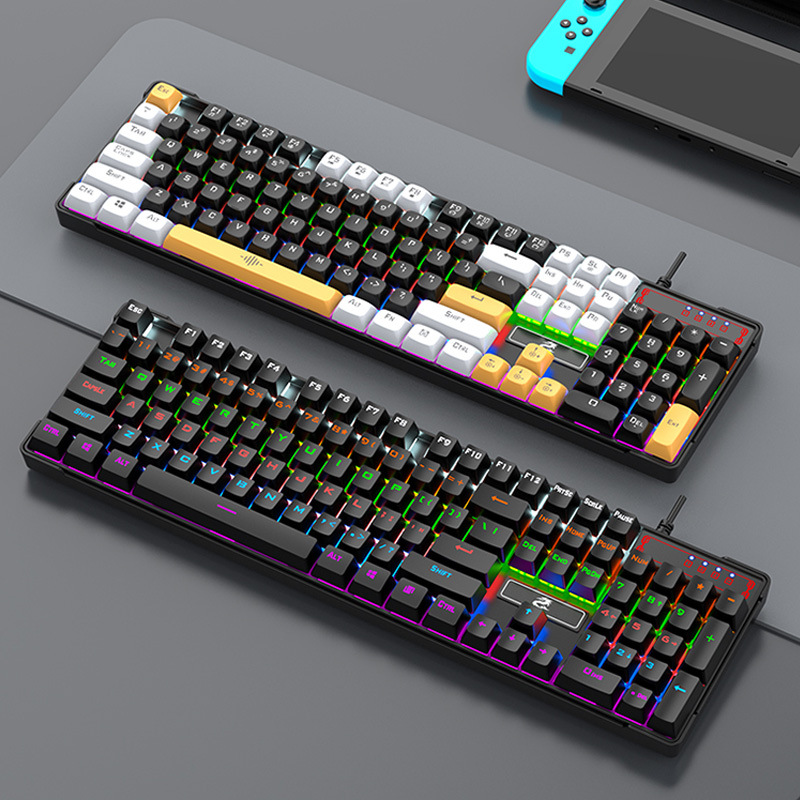 기계식 키보드 유선 발광 전자 스포츠 게임 키보드 녹색 샤프트 RGB 발광 3 색 키 캡 1.6M 유선 USB