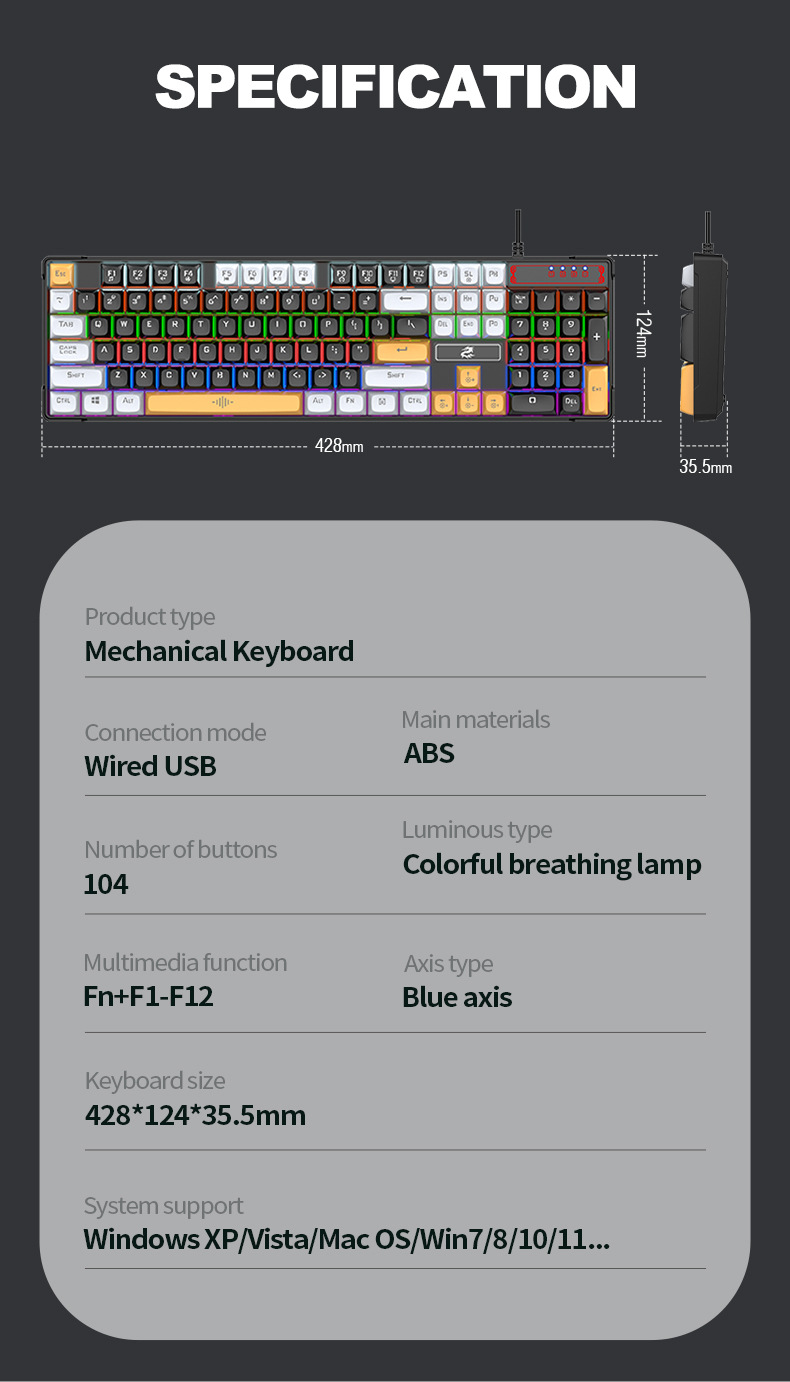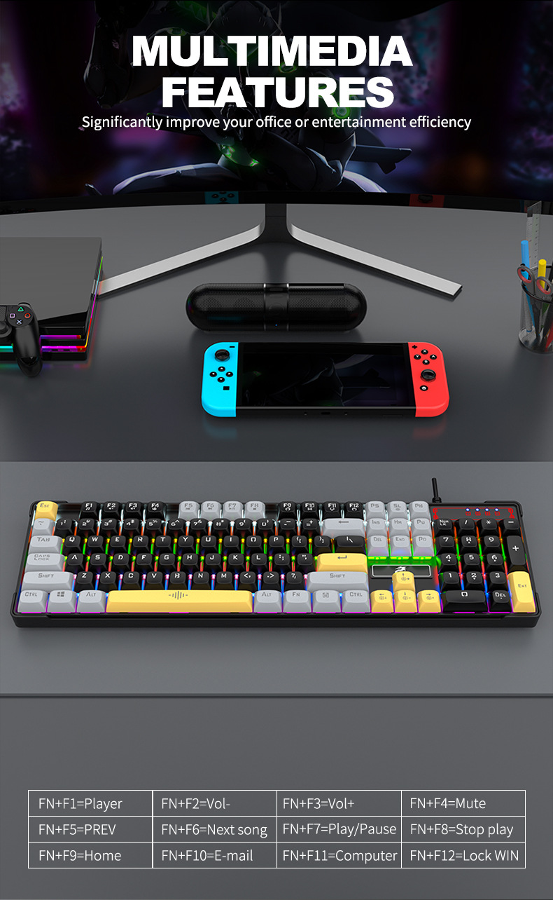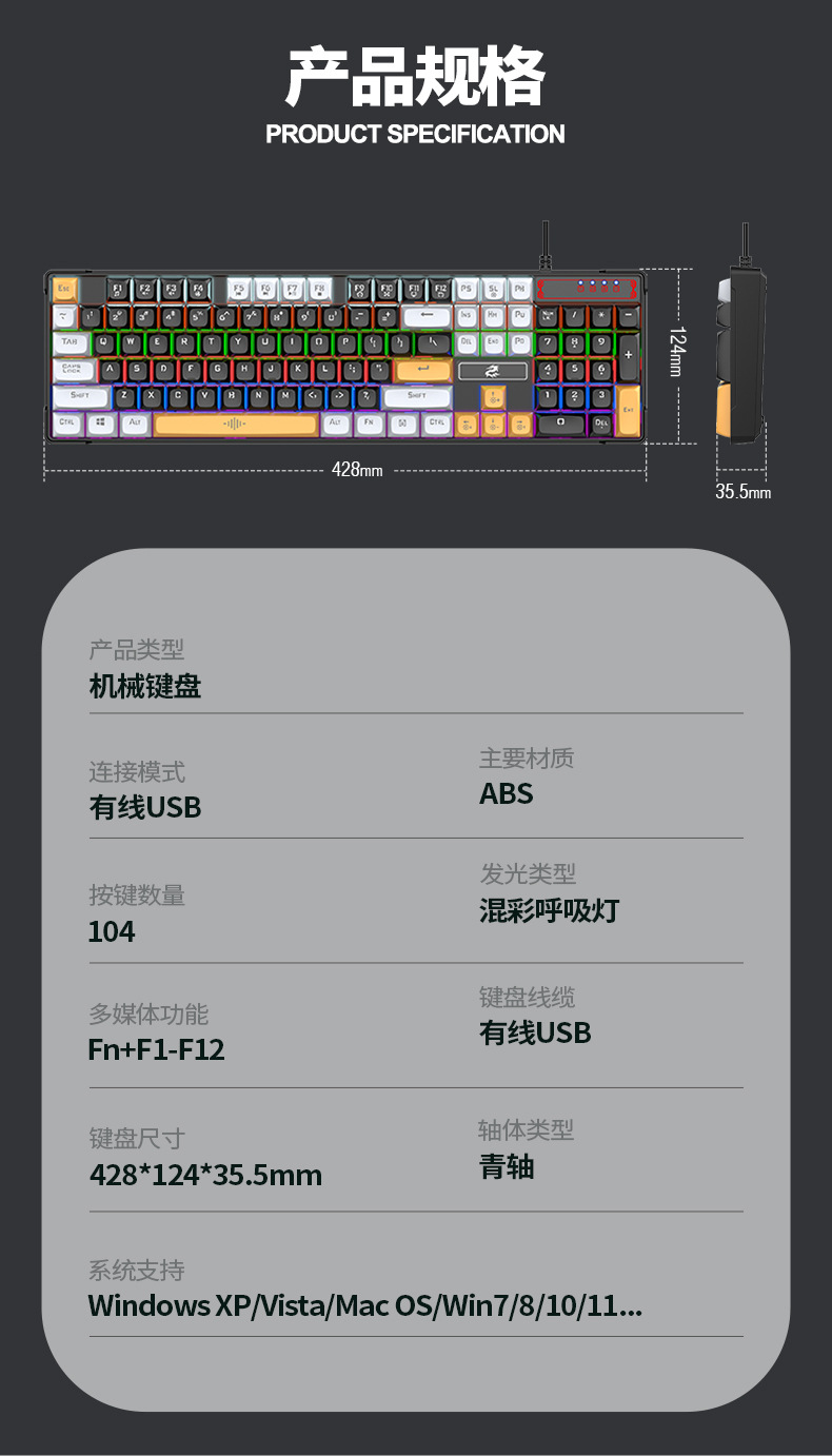 기계식 키보드 유선 발광 전자 스포츠 게임 키보드 녹색 샤프트 RGB 발광 3 색 키 캡 1.6M 유선 USB