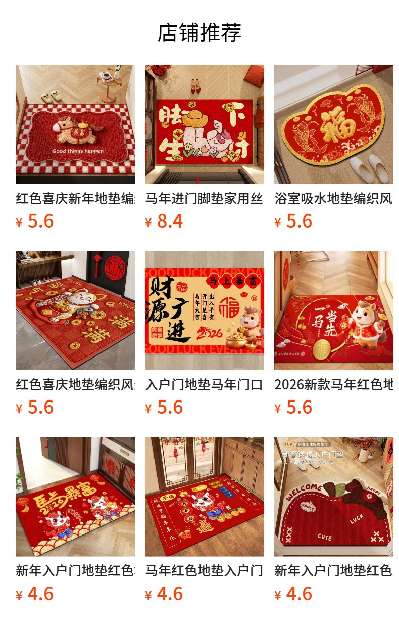 말년 빨간 문매트, 새해 입구 문매트, 축제 분위기의 중국풍 현관 카펫, 빨간색 가정용 발매트, 바닥 매트스토어 가기