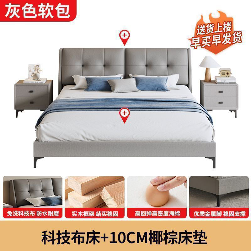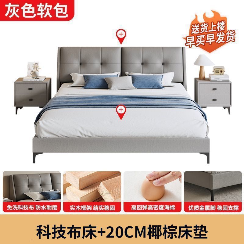 모든 단단한 나무 가죽 예술 침대 기술 천 침대 더블 1.8x2 웨딩 침대 임대 방 호텔 도매 침대 1.2x2 싱글 침대스토어 가기