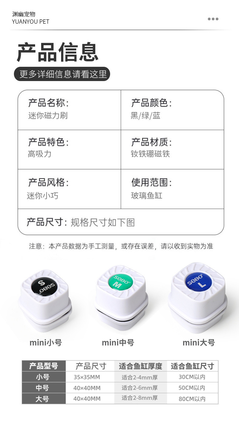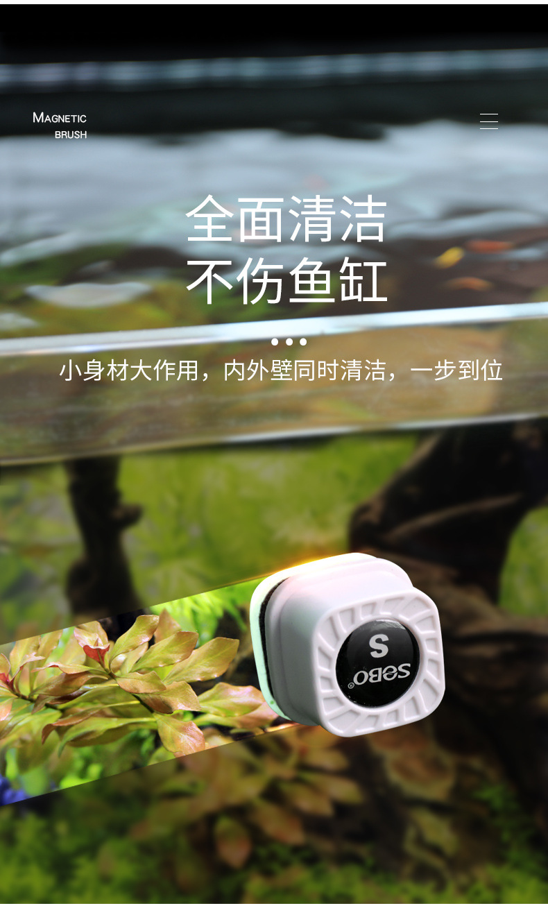 국경을 넘는 송바오 어항 미니 자석 브러시 어항 브러시 유리 닦이 양면 청소 세척 조류 제거 칼스토어 가기