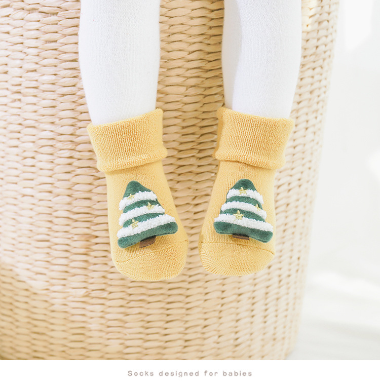겨울 새로운 테리 두꺼운 아기 양말 분배 미끄럼 방지 아기 바닥 양말 어린이 크리스마스 만화 인형 양말스토어 가기