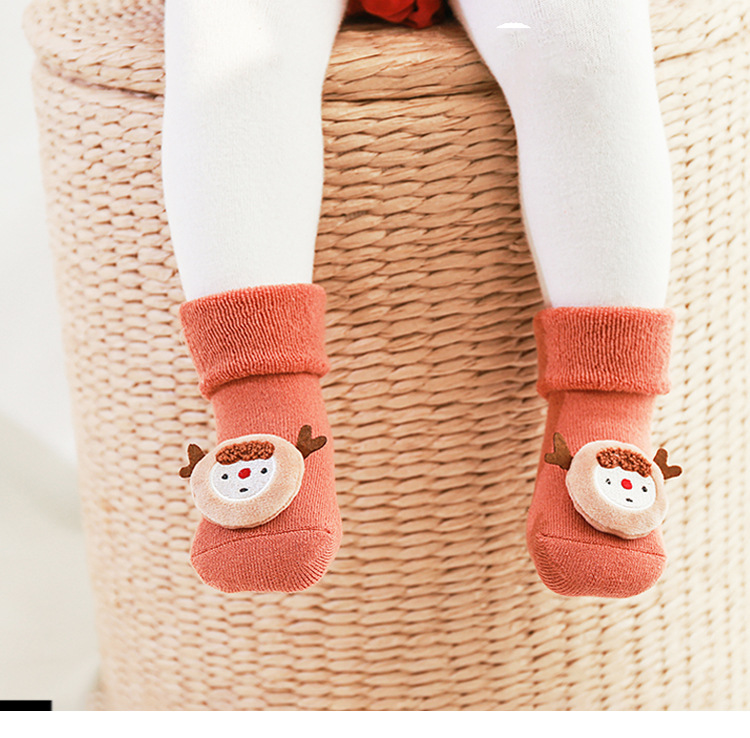 겨울 새로운 테리 두꺼운 아기 양말 분배 미끄럼 방지 아기 바닥 양말 어린이 크리스마스 만화 인형 양말