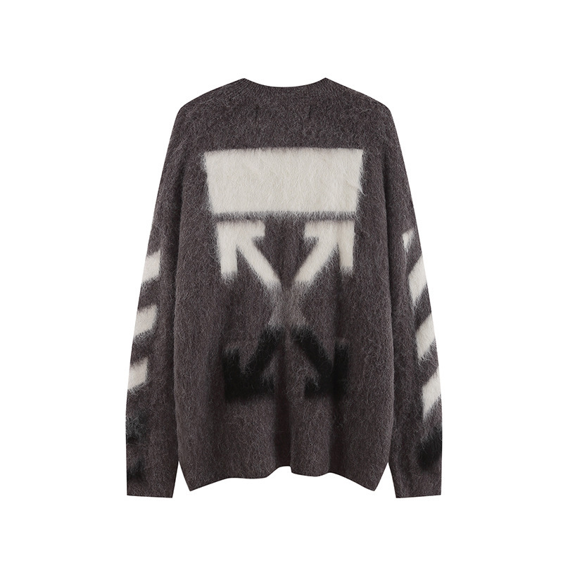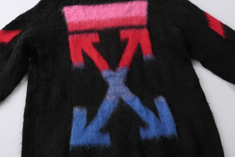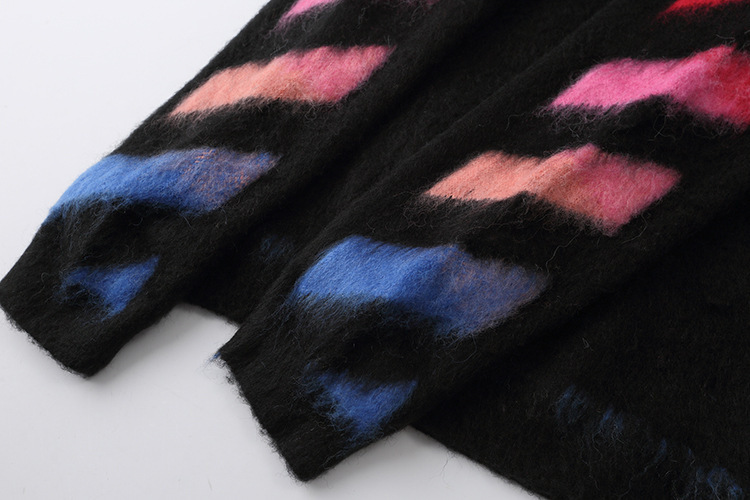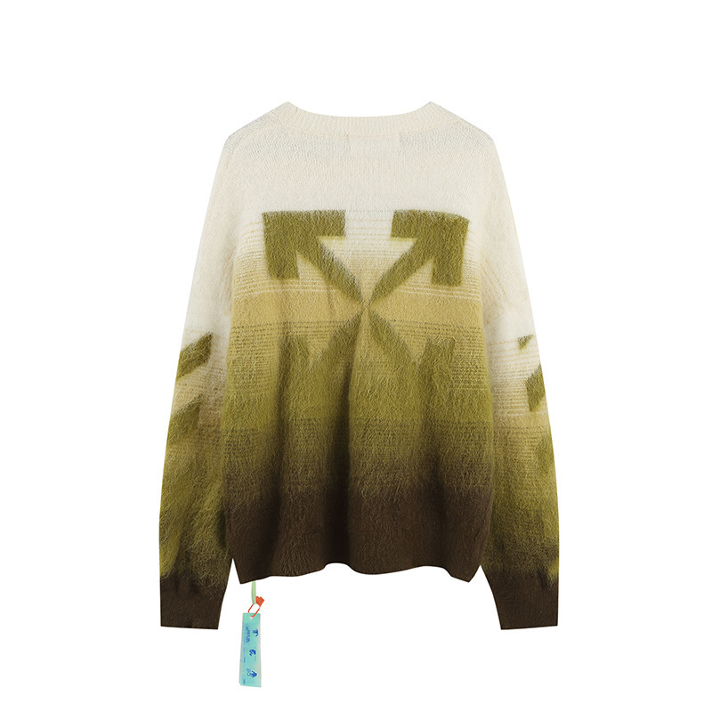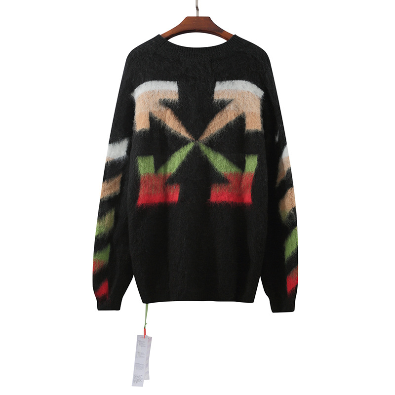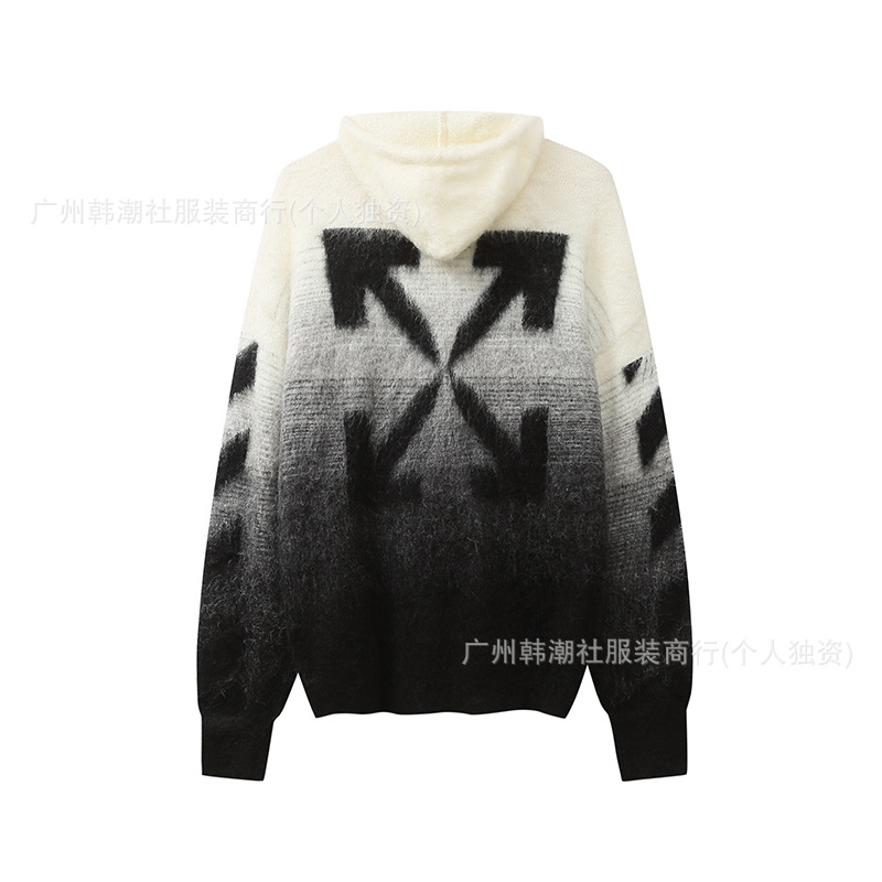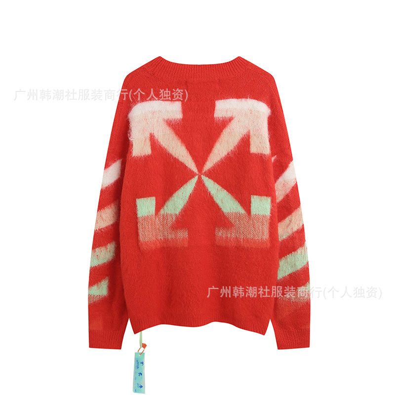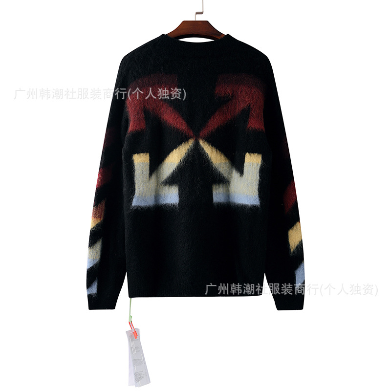 秋冬OFF马海毛毛衣渐变OW箭头印花男女宽松针织衫上衣跨境