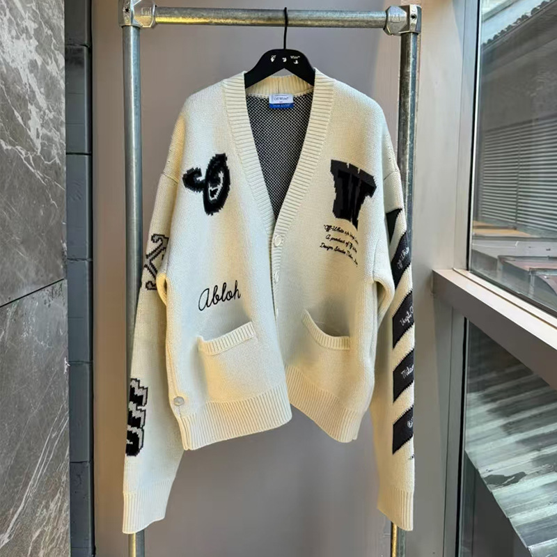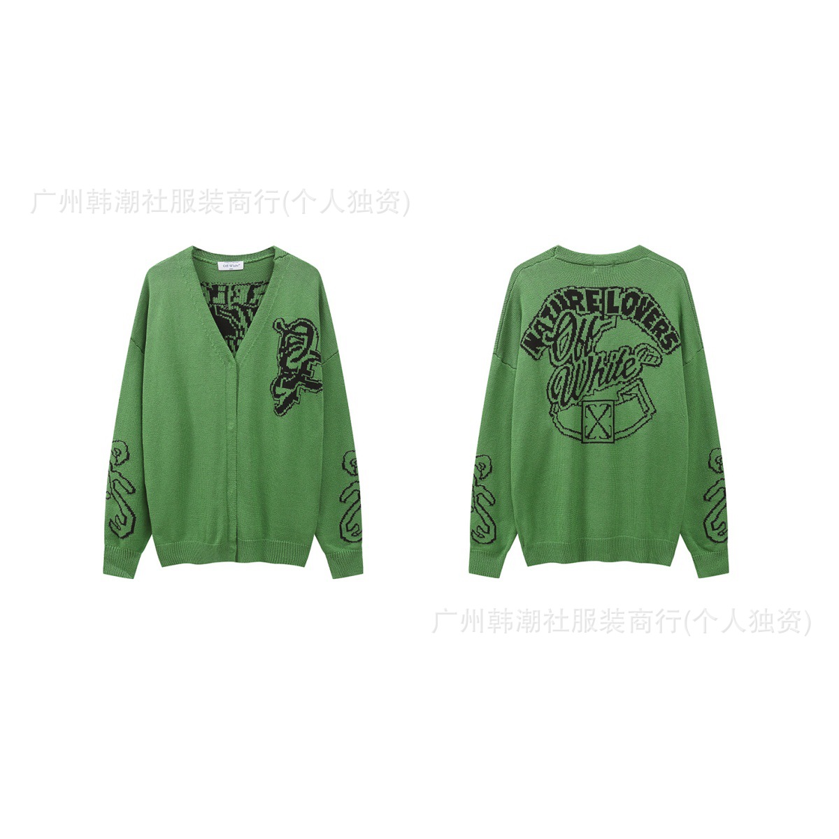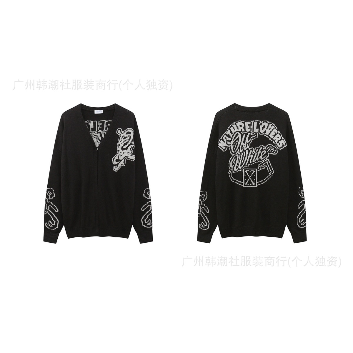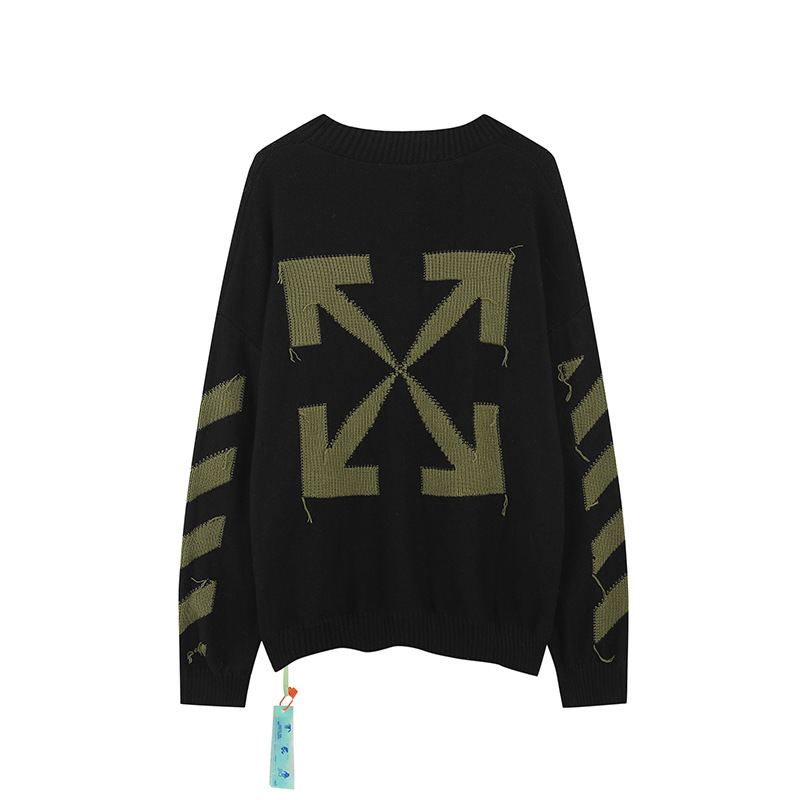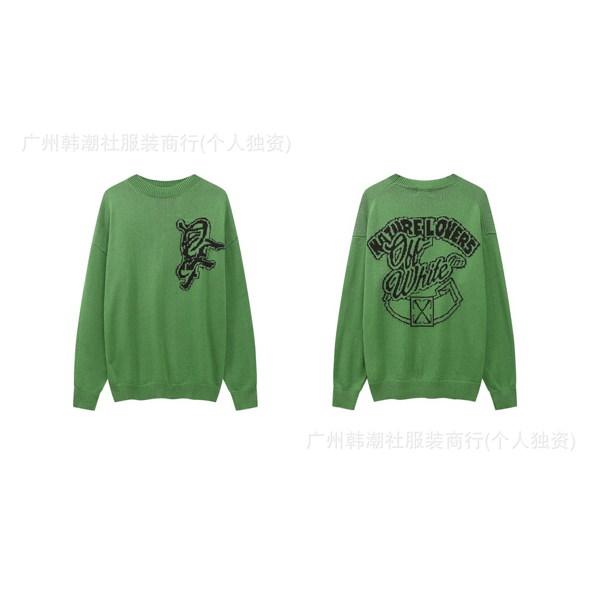 秋冬OFF马海毛毛衣渐变OW箭头印花男女宽松针织衫上衣跨境