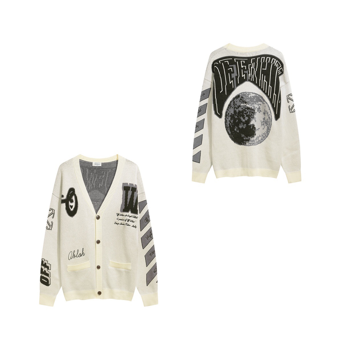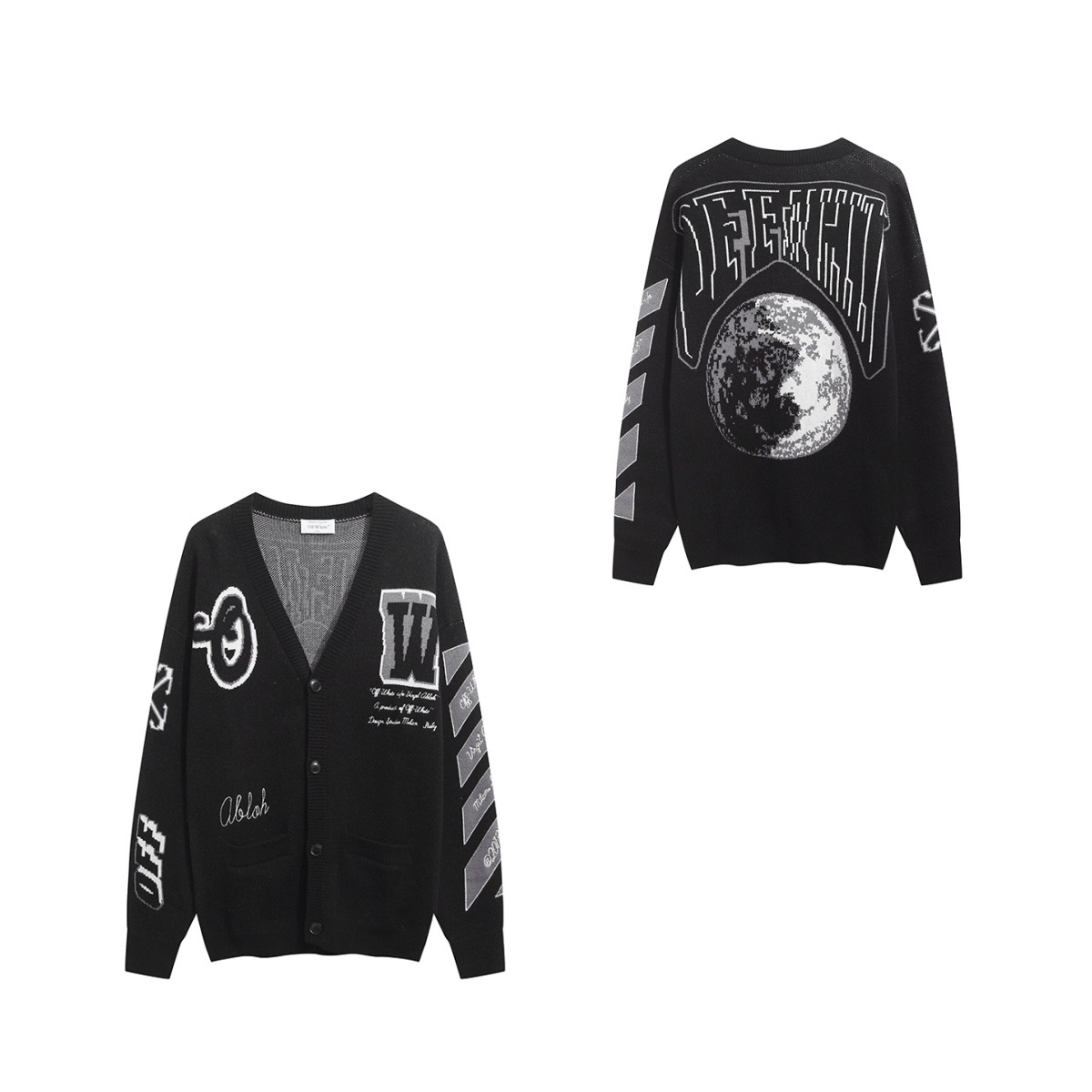 가을과 겨울 OFF 모헤어 스웨터 그라디언트 OW 화살표 인쇄 남성과 여성의 느슨한 스웨터 상단 국경